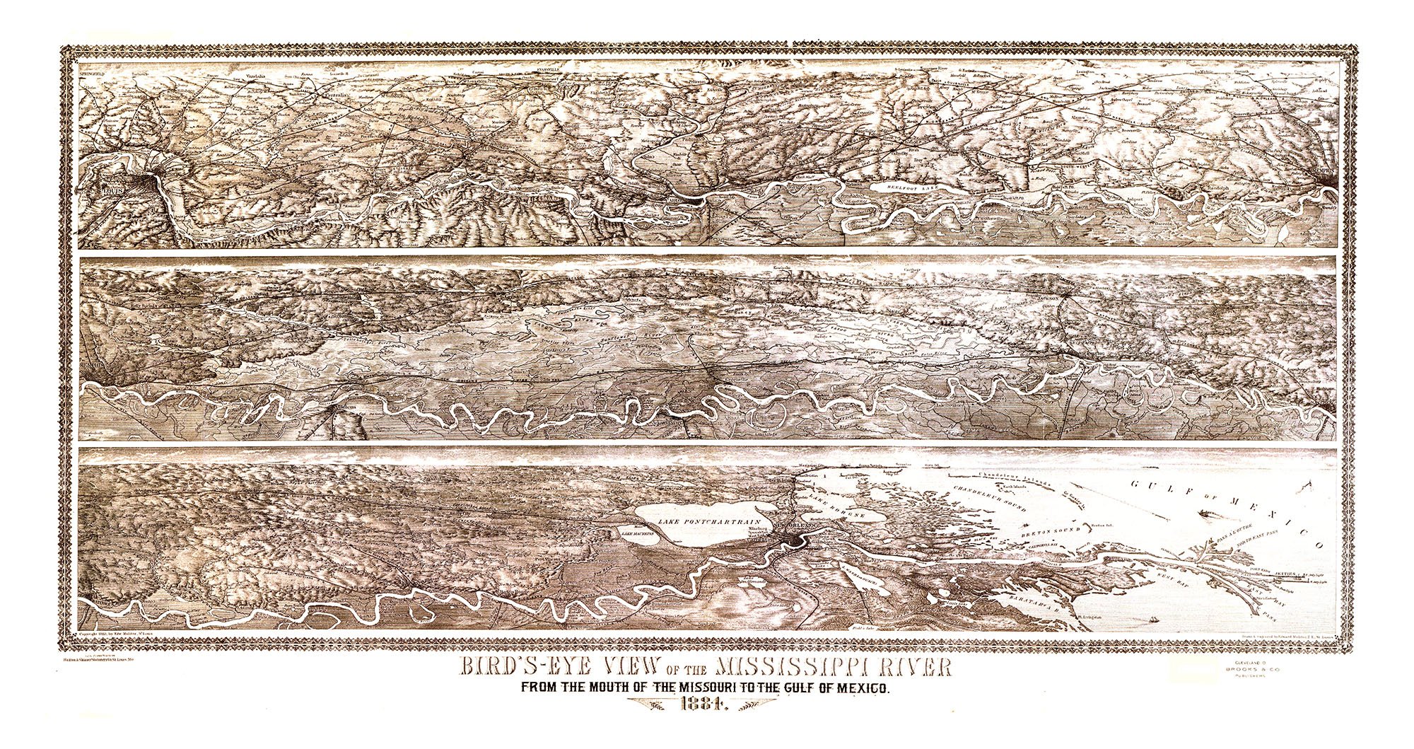 Mississippi River from the Mouth of the Missouri River to the Gulf of Mexico 1884 - Bird's Eye View Map, Antique map, Framable, Fine Art