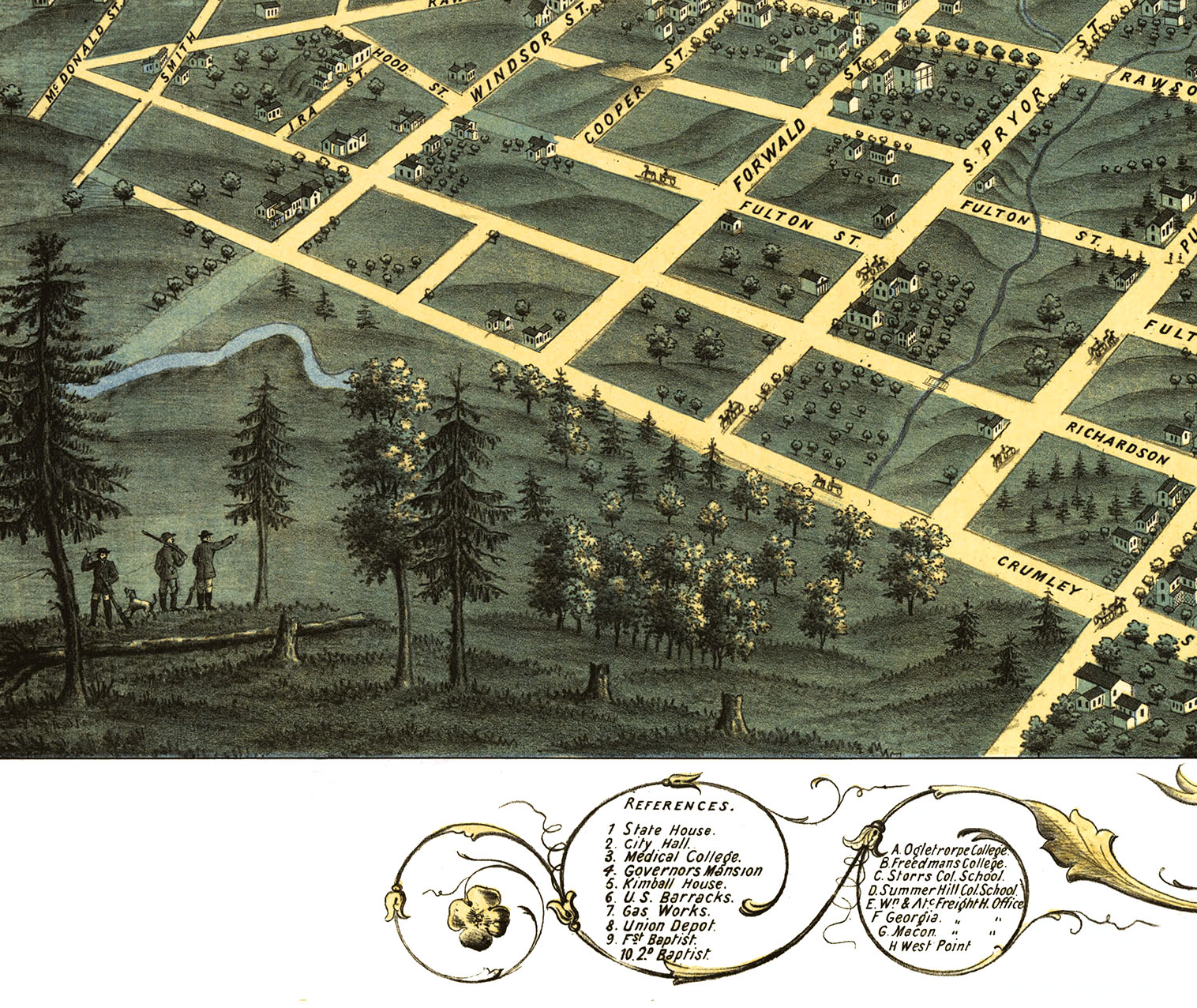 Atlanta, GA in 1871 - Bird's Eye View Map, Aerial, Panorama, Vintage, Antique, Reproduction, Giclée, Framable, Fine Art, Wall art