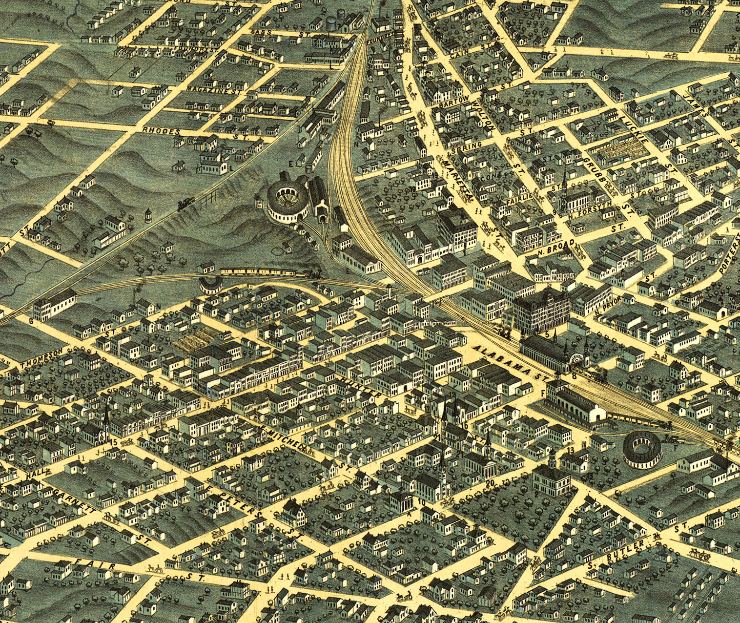 Full color "Bird's Eye View" fine art map of Atlanta, GA in 1871. Extremely fine detail. Your print will not have the "OldMapsOfThe1800s" watermark.