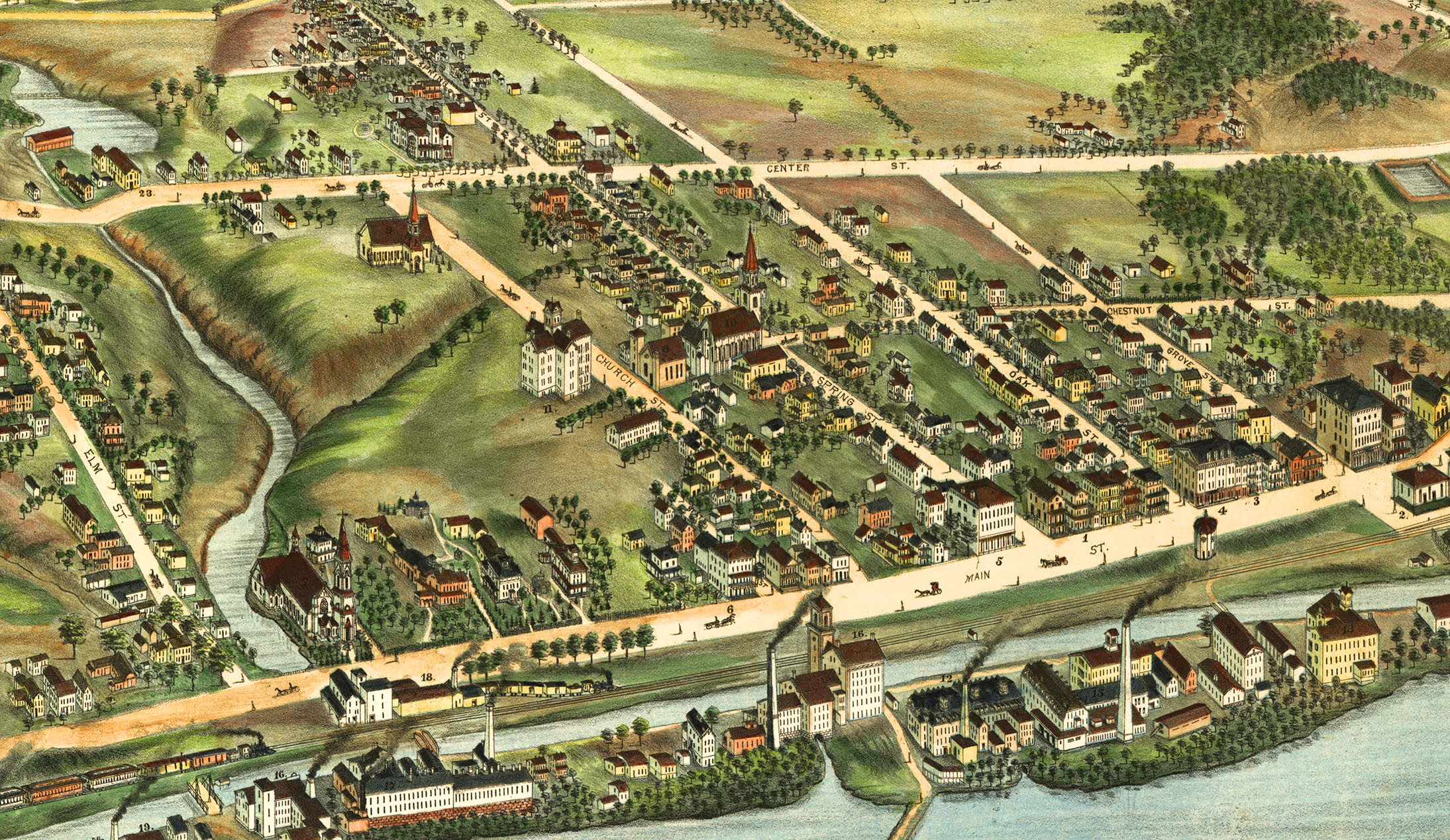 Windsor Locks, CT in 1877 - Bird's Eye View, Aerial map, Panorama, Vintage map, Antique map, Giclée, Framable map, Fine Art, Wall art