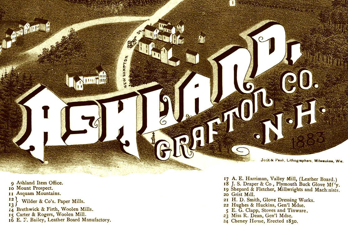 Ashland, NH in 1883 - Bird's Eye View Map, Aerial, Panorama, Vintage, Antique, Reproduction, Giclée, Framable, Fine Art