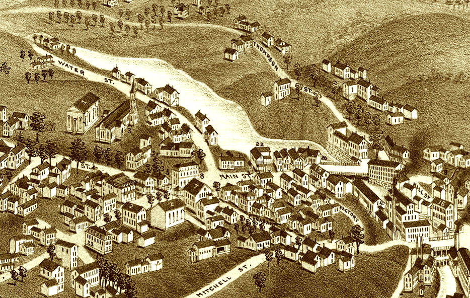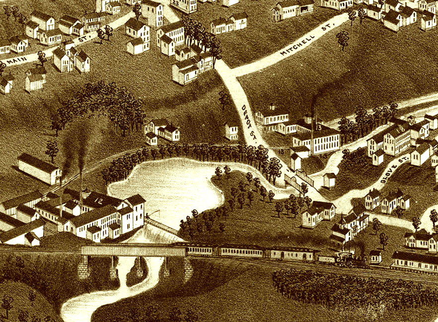 Sepia tone, highly stylized fine art map of Ashland, NH in 1883. Your print will not have the "OldMapsOfThe1800s" watermark.