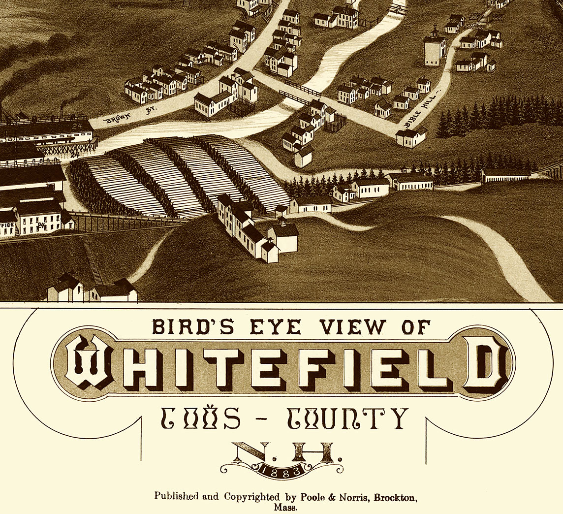 Whitefield, NH in 1883 - Bird's Eye Map, Aerial map, Panorama map, Vintage map, Antique map, Reproduction, Giclée, Framable map, Fine Art