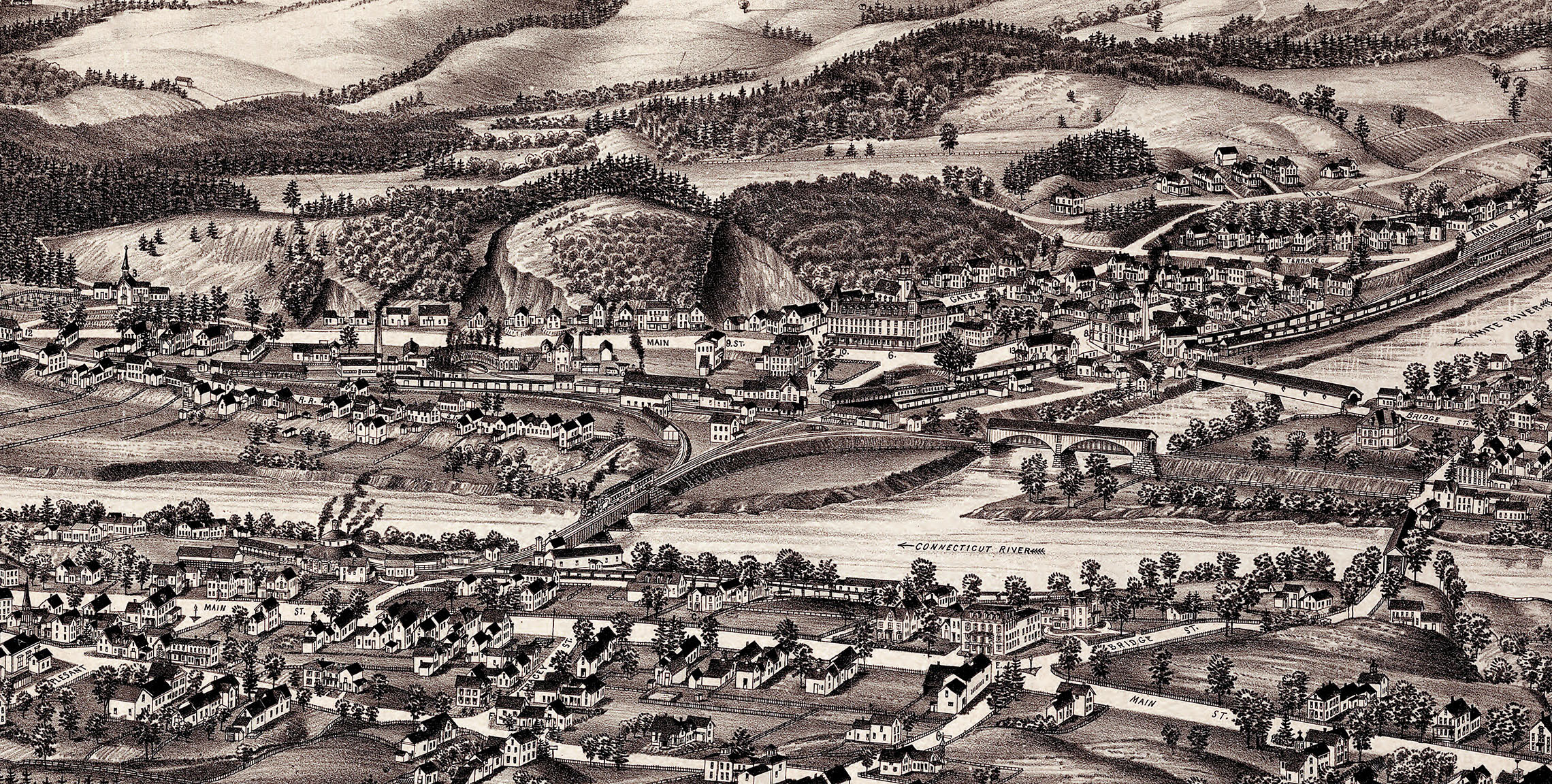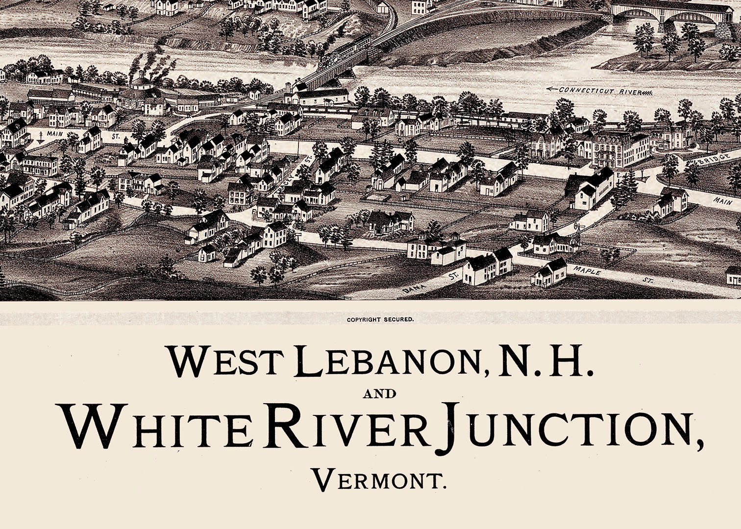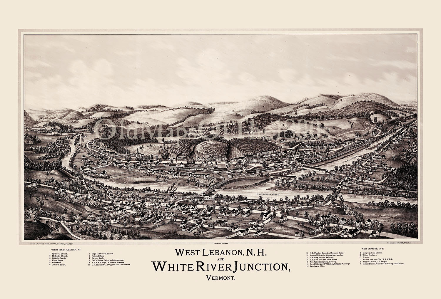 West Lebanon, NH & White River Junction, VT 1883 - Bird's Eye, Aerial, Panorama, Vintage, Antique, Reproduction, Giclée, Framable, Fine Art
