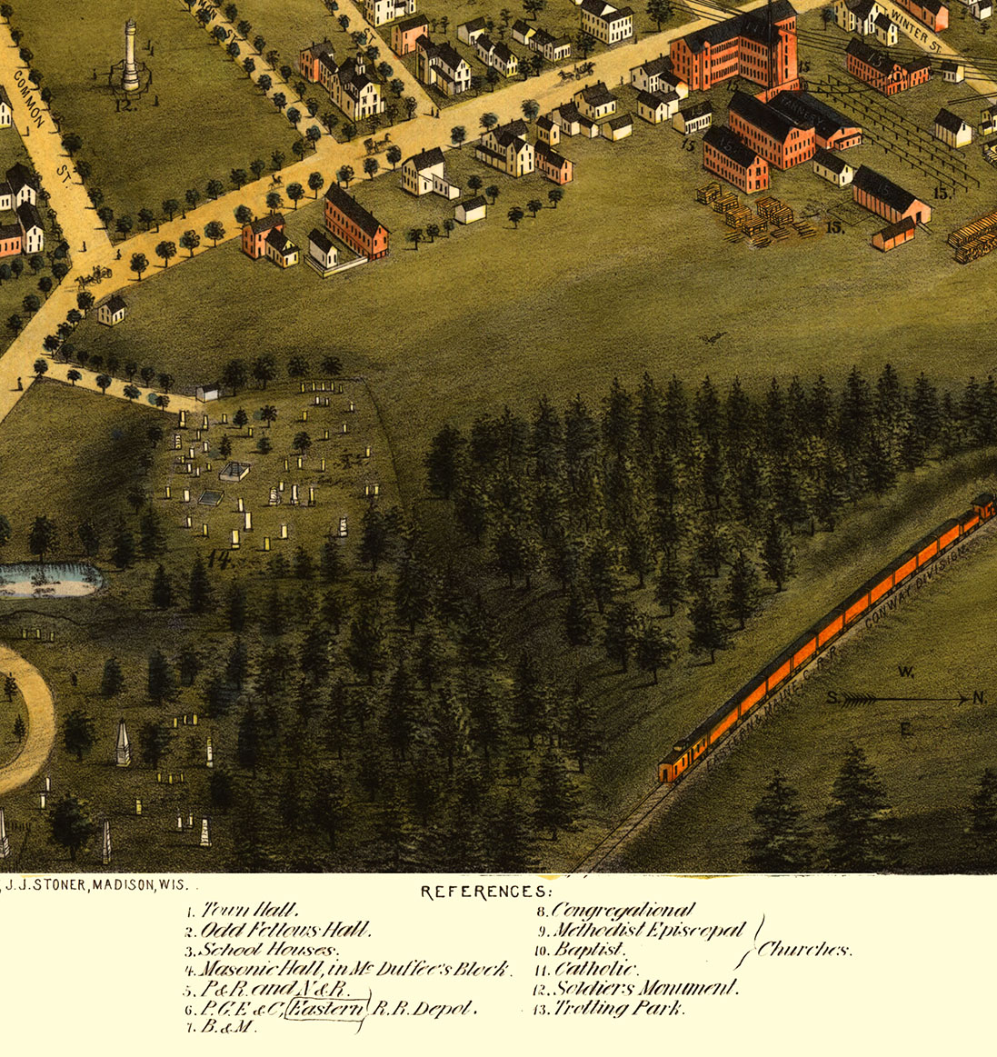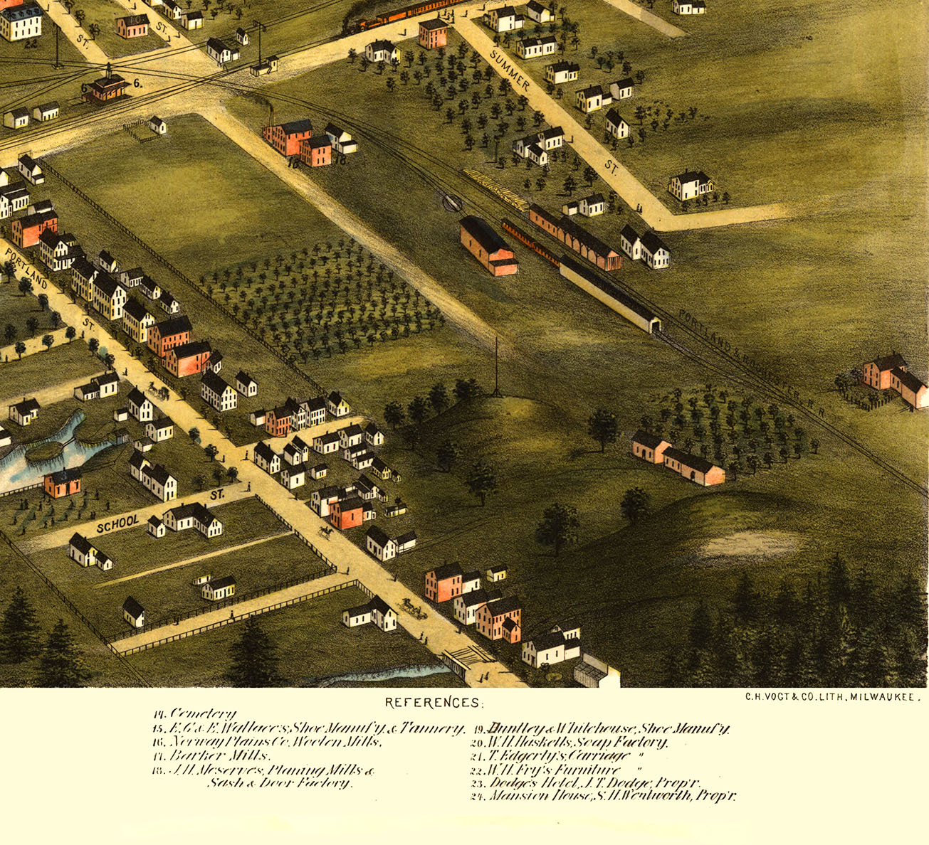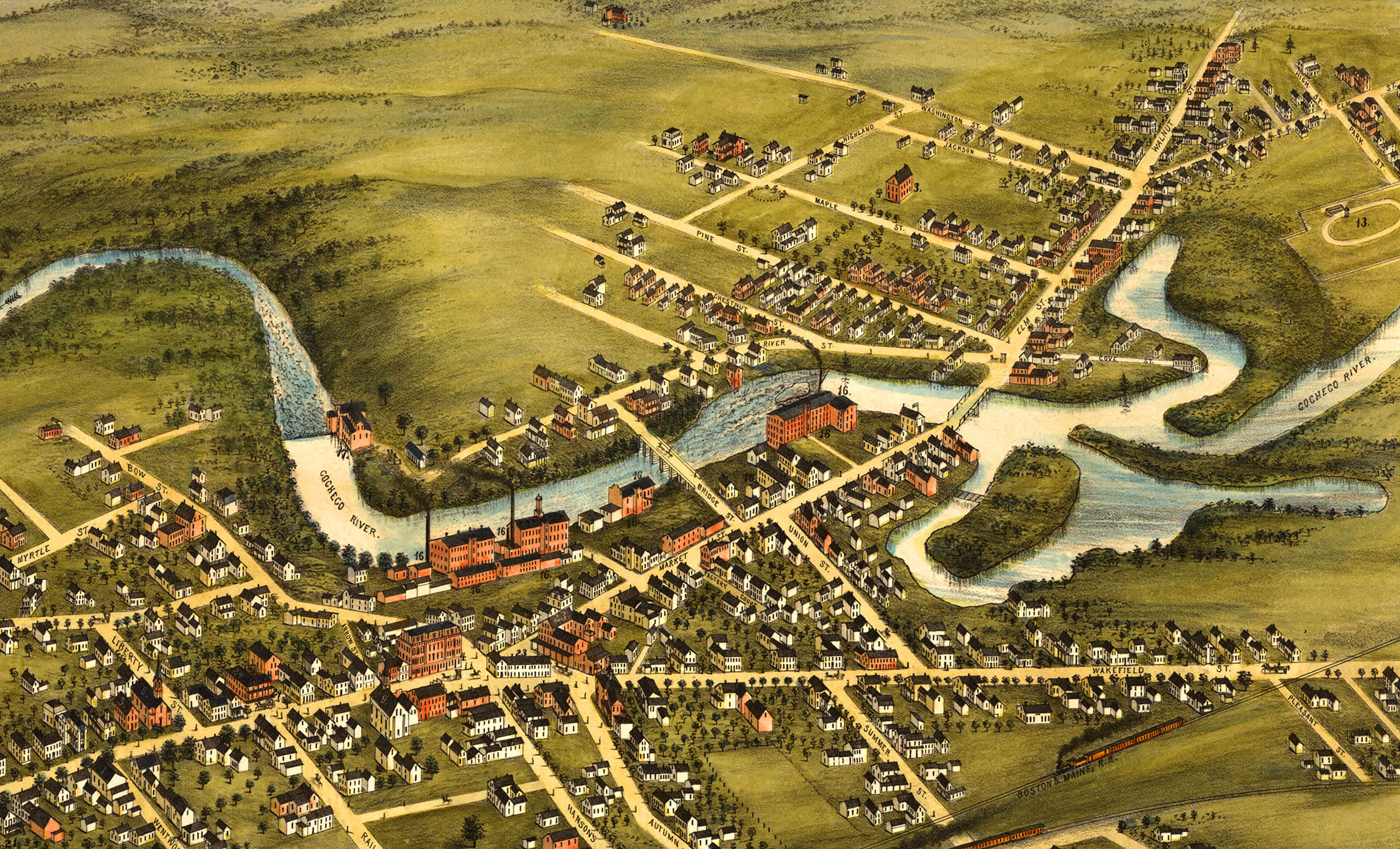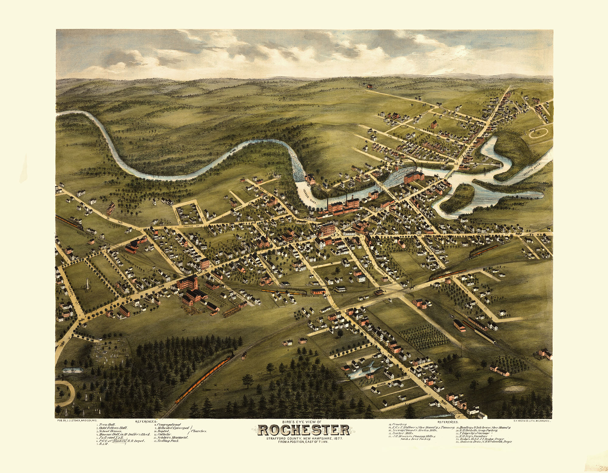 Rochester, NH in 1877 - Bird's Eye View Map, Aerial, Panorama, Vintage, Antique, Reproduction, Giclée, Framable, Fine Art
