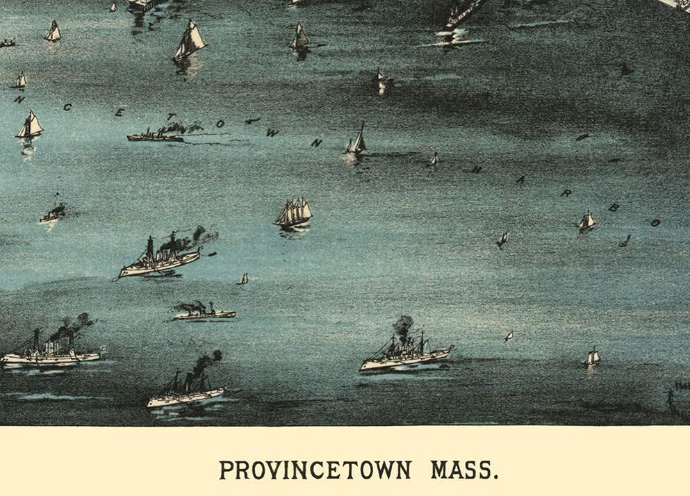 Provincetown, MA in 1910 - Bird's Eye View Map, Aerial Map, Panorama, Vintage Map, Antique Map, Reproduction, Giclée, Framable Map, Fine Art
