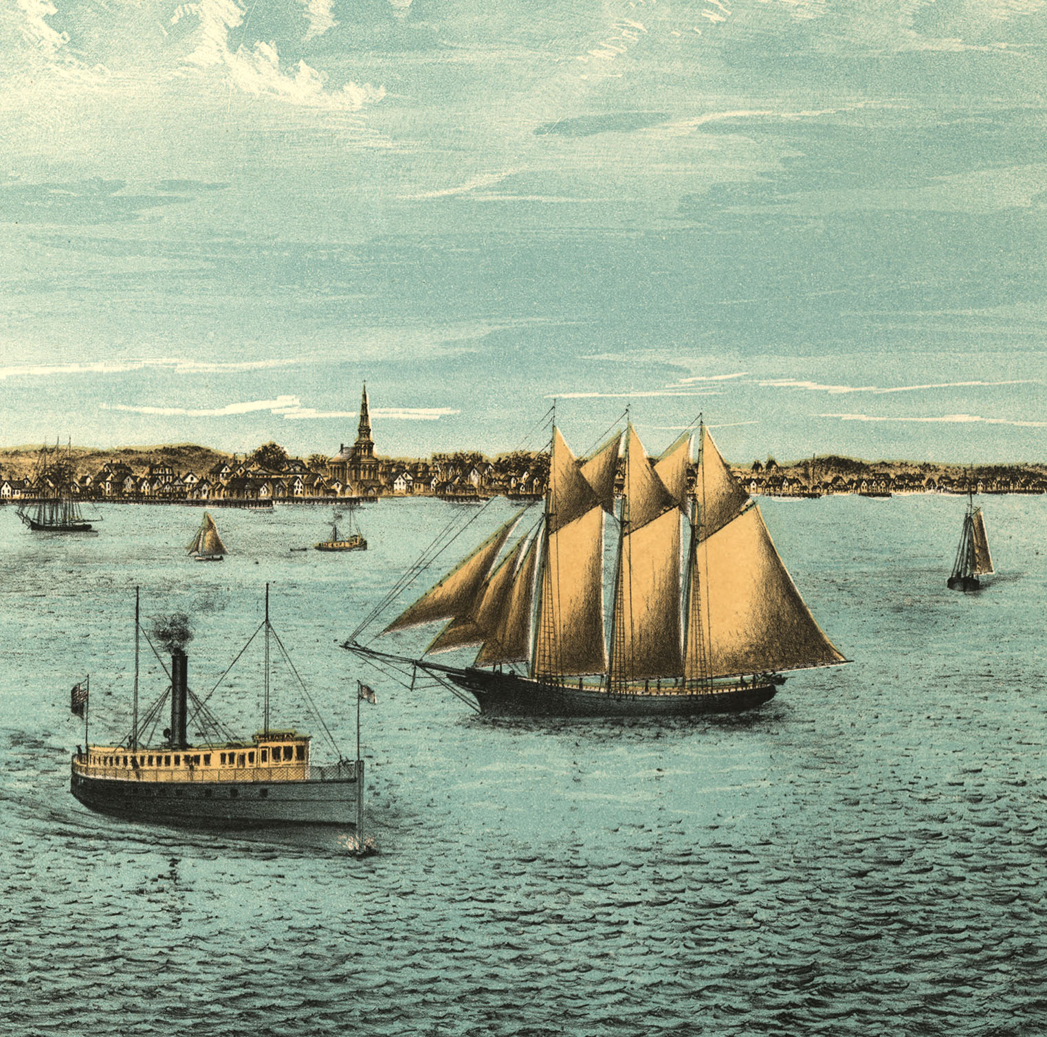 Provincetown, MA in 1877 - Bird's Eye View Map, Aerial, Panorama, Vintage, Antique, Reproduction, Giclée, Framable, Fine Art