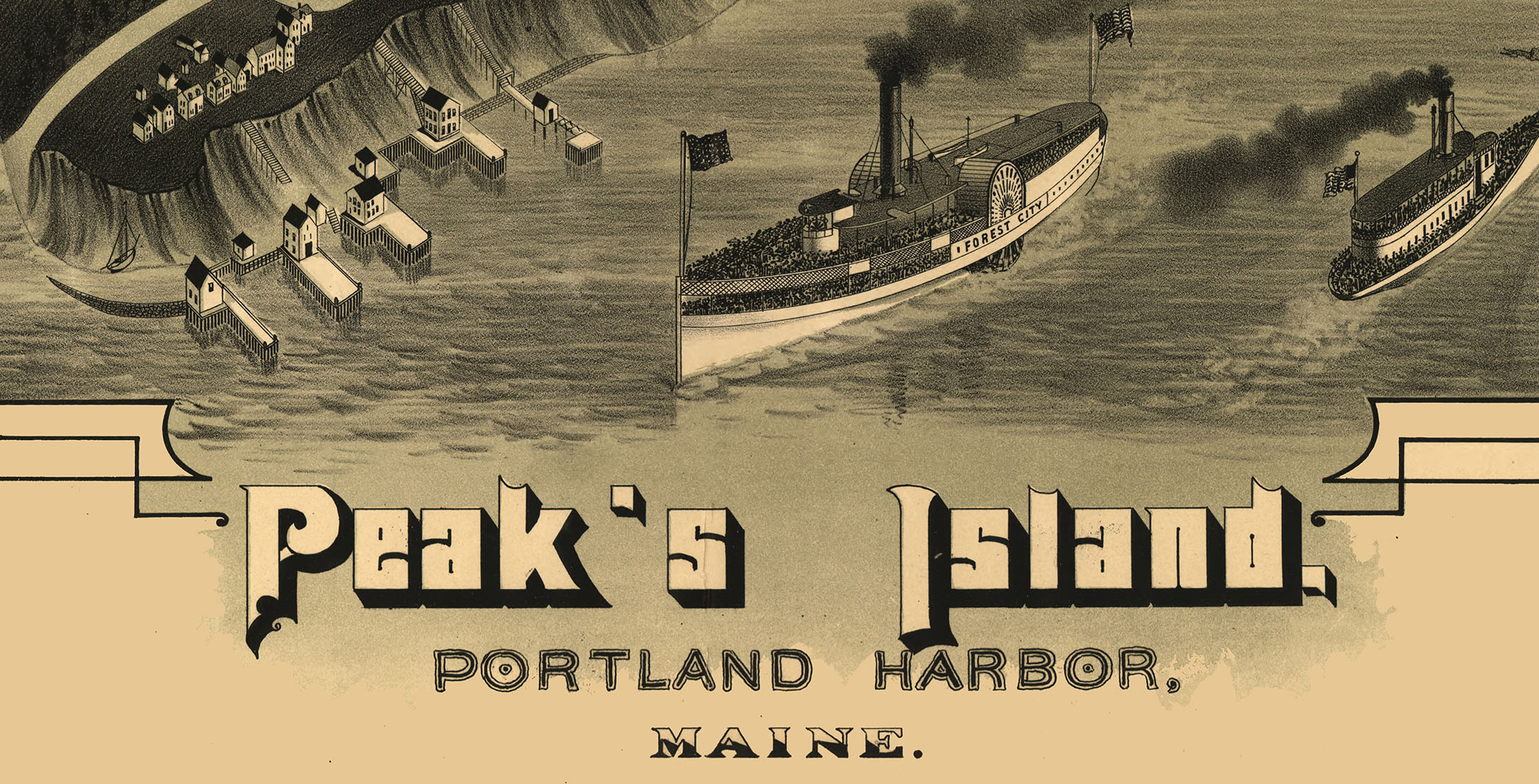 Peak's Island, Portland Harbor, Maine in 1886 - Bird's Eye View Map, Aerial, Panorama, Vintage, Antique, Giclée, Framable, Fine Art