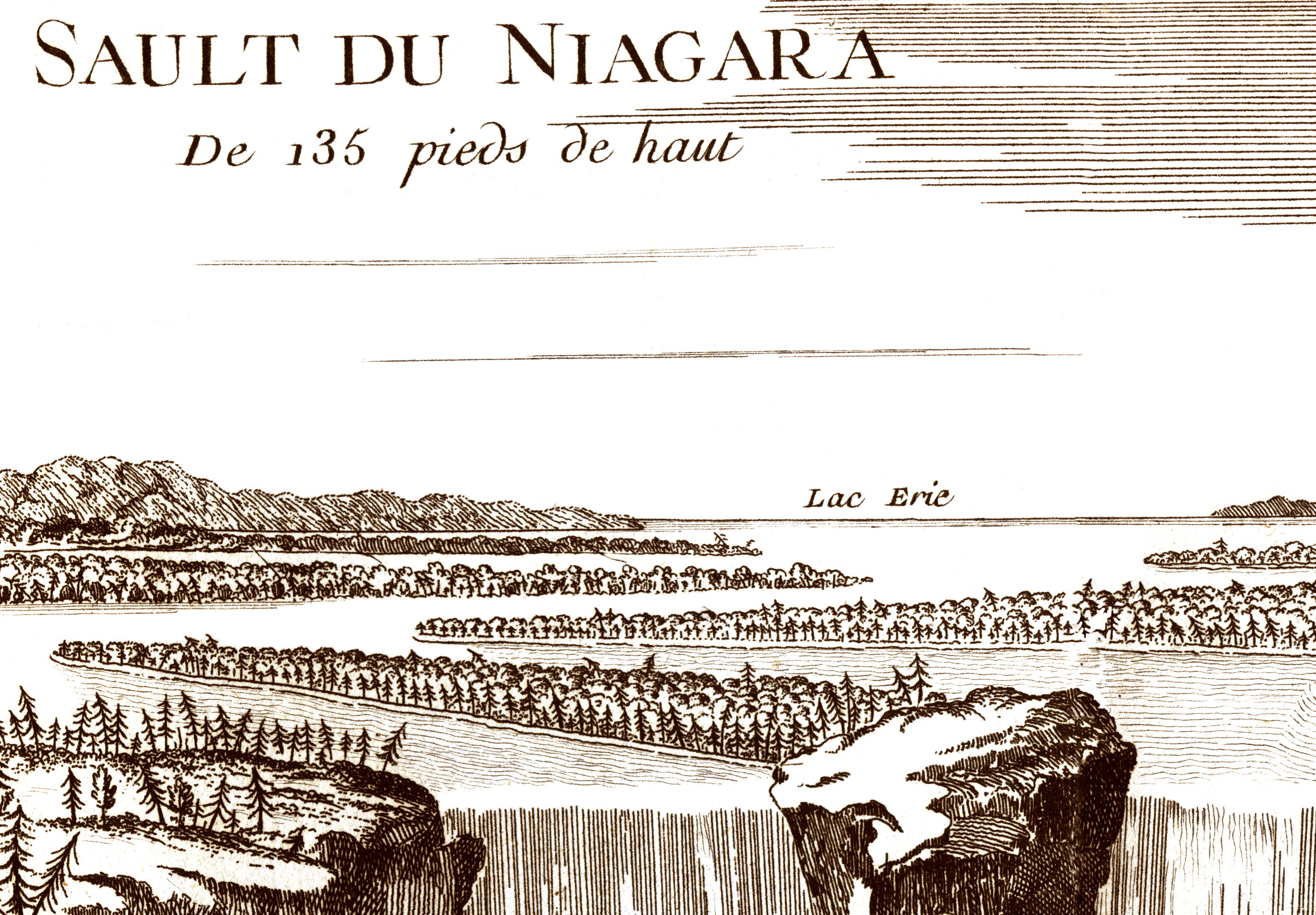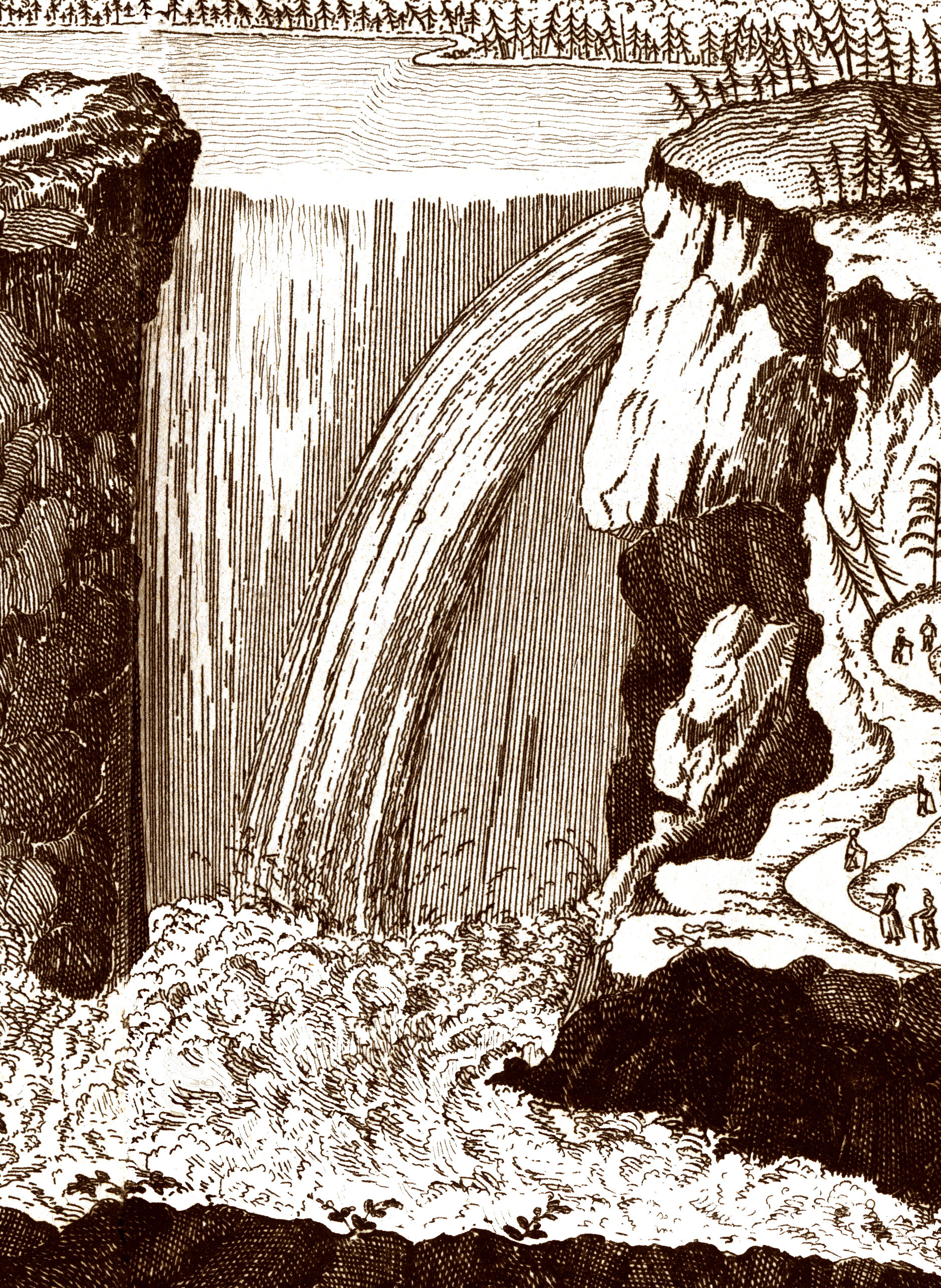 Sepia tone bird's eye view of Niagara Falls from 1775. It's ALMOST from the 1800s ... still pretty cool!