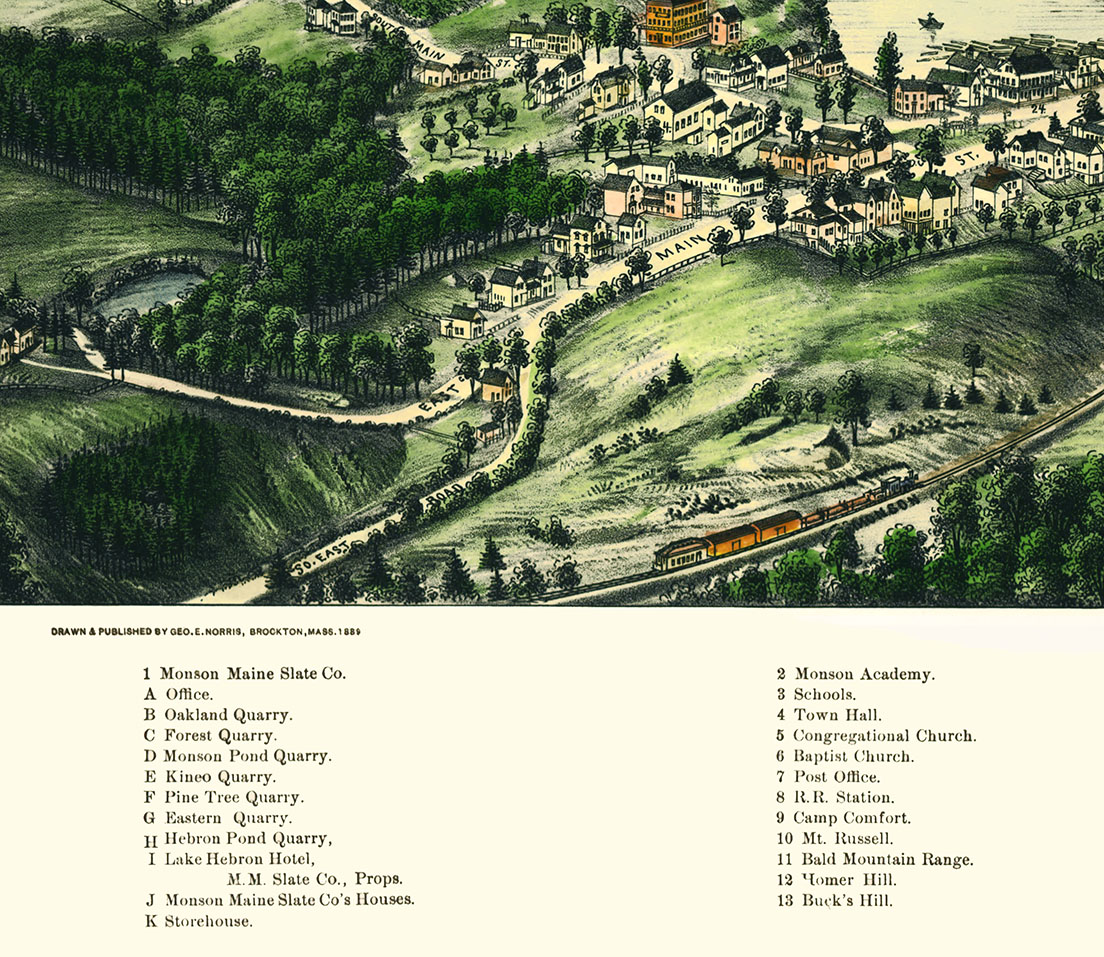 Monson, Maine in 1889 - Bird's Eye View Map, Aerial, Panorama, Vintage, Antique, Reproduction, Giclée, Framable, Fine Art