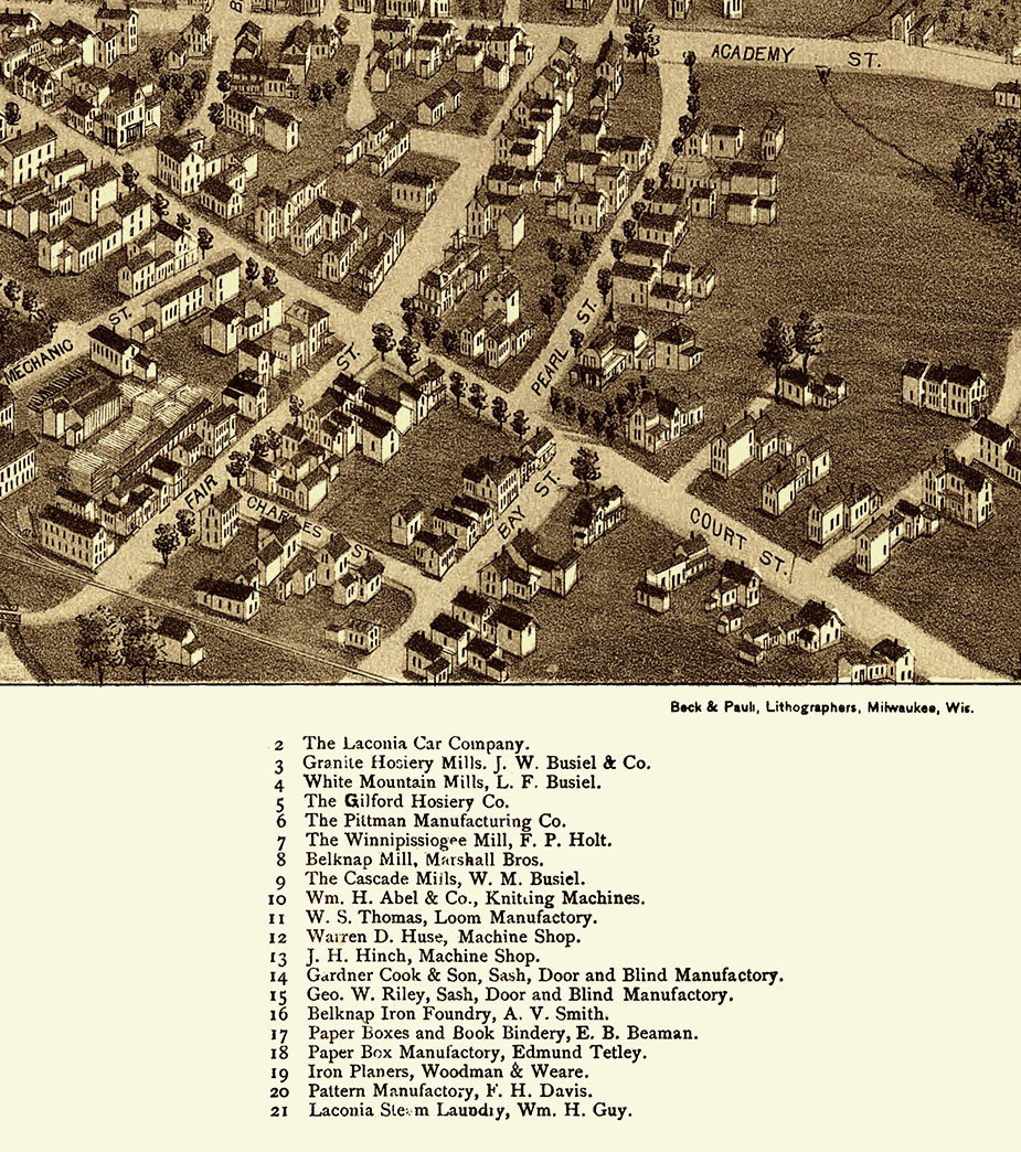 Laconia, NH in 1883 - Bird's Eye View Map, Aerial, Panorama, Vintage, Antique, Reproduction, Giclée, Framable, Fine Art