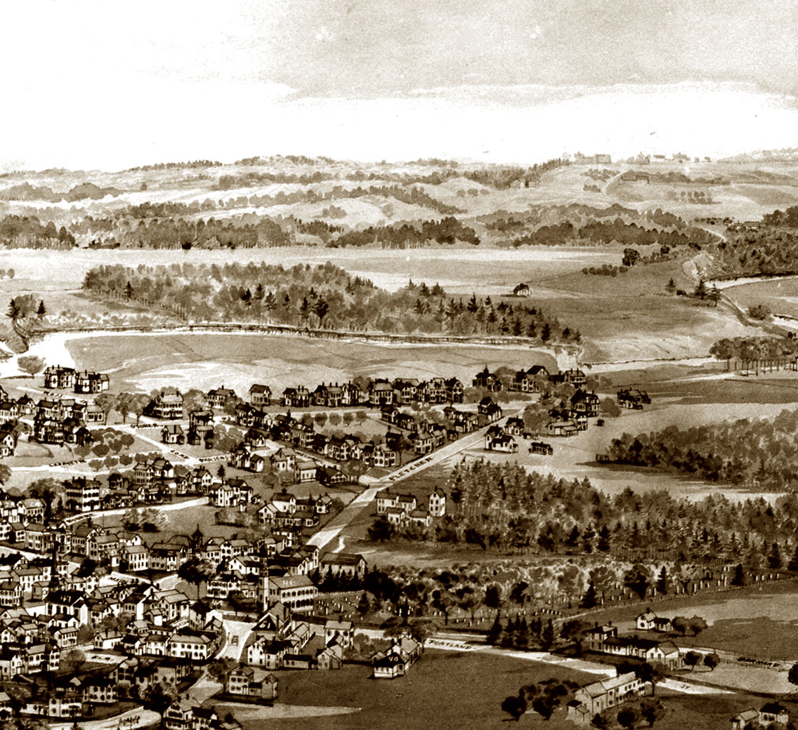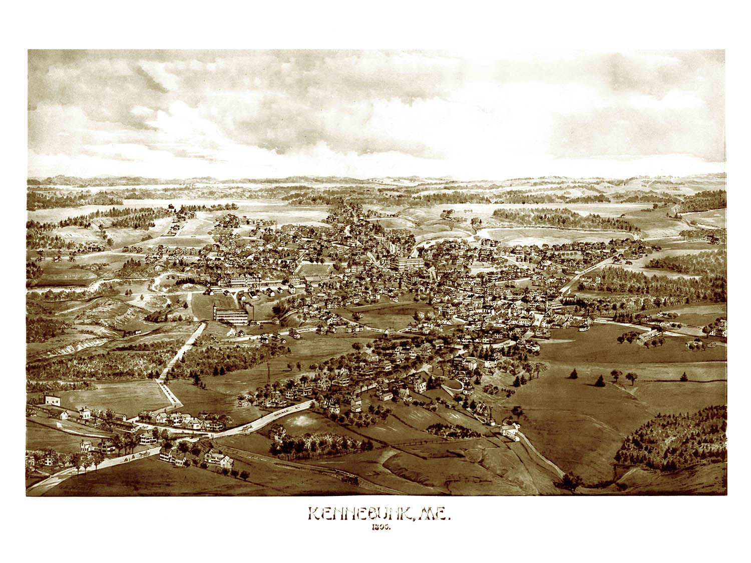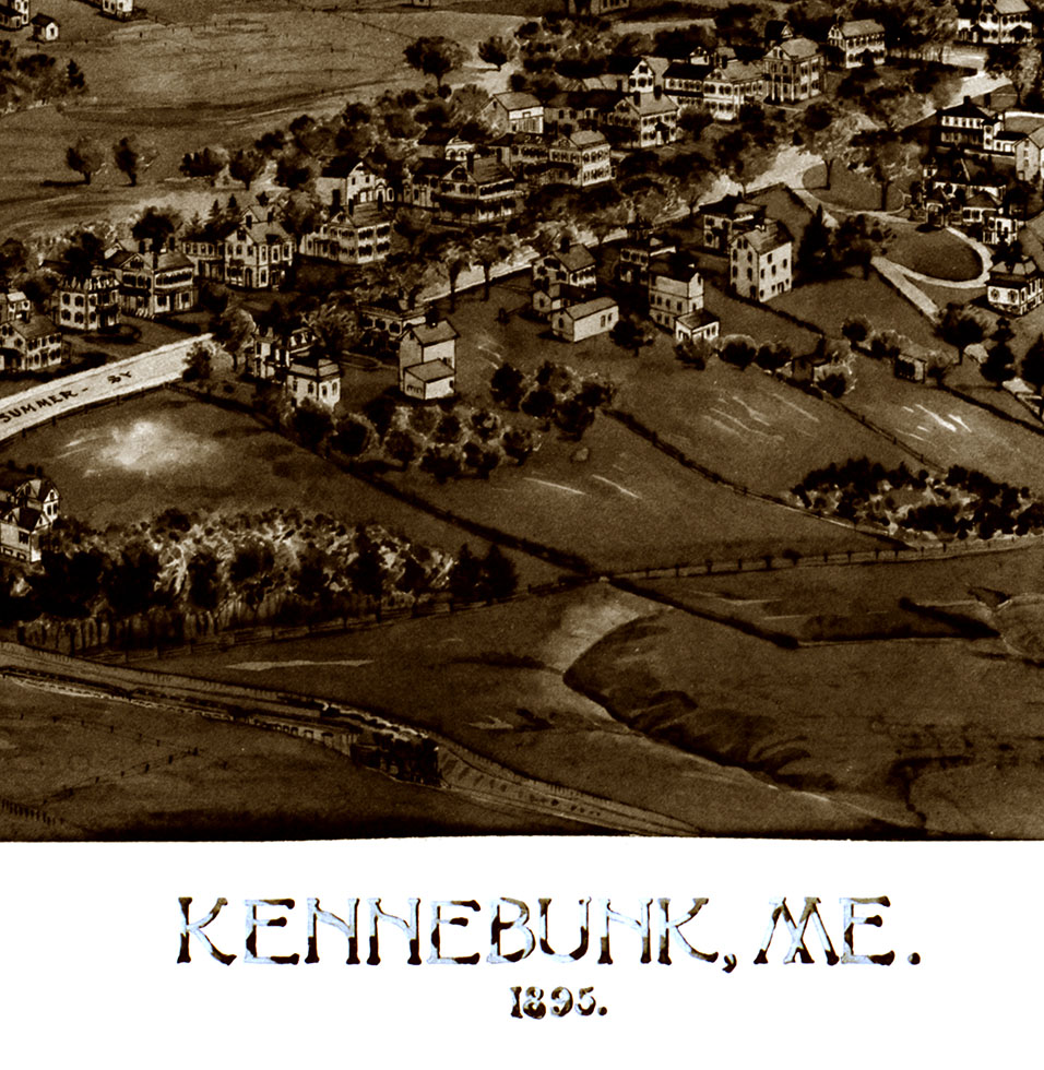 Kennebunk, Maine in 1895 - Bird's Eye View Map, Aerial, Panorama, Vintage, Antique, Reproduction, Giclée, Framable, Fine Art