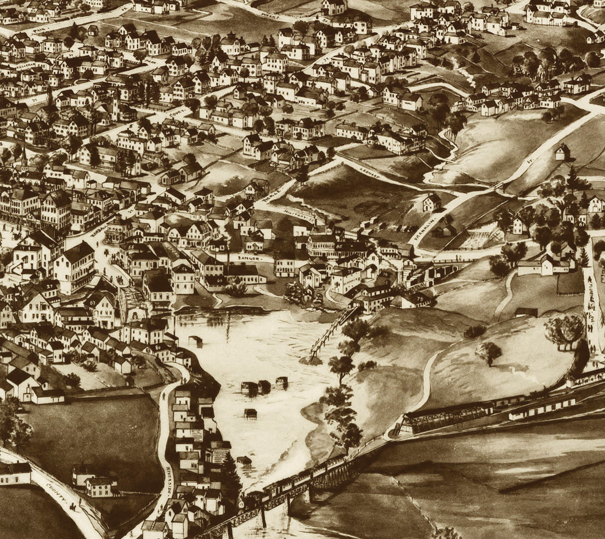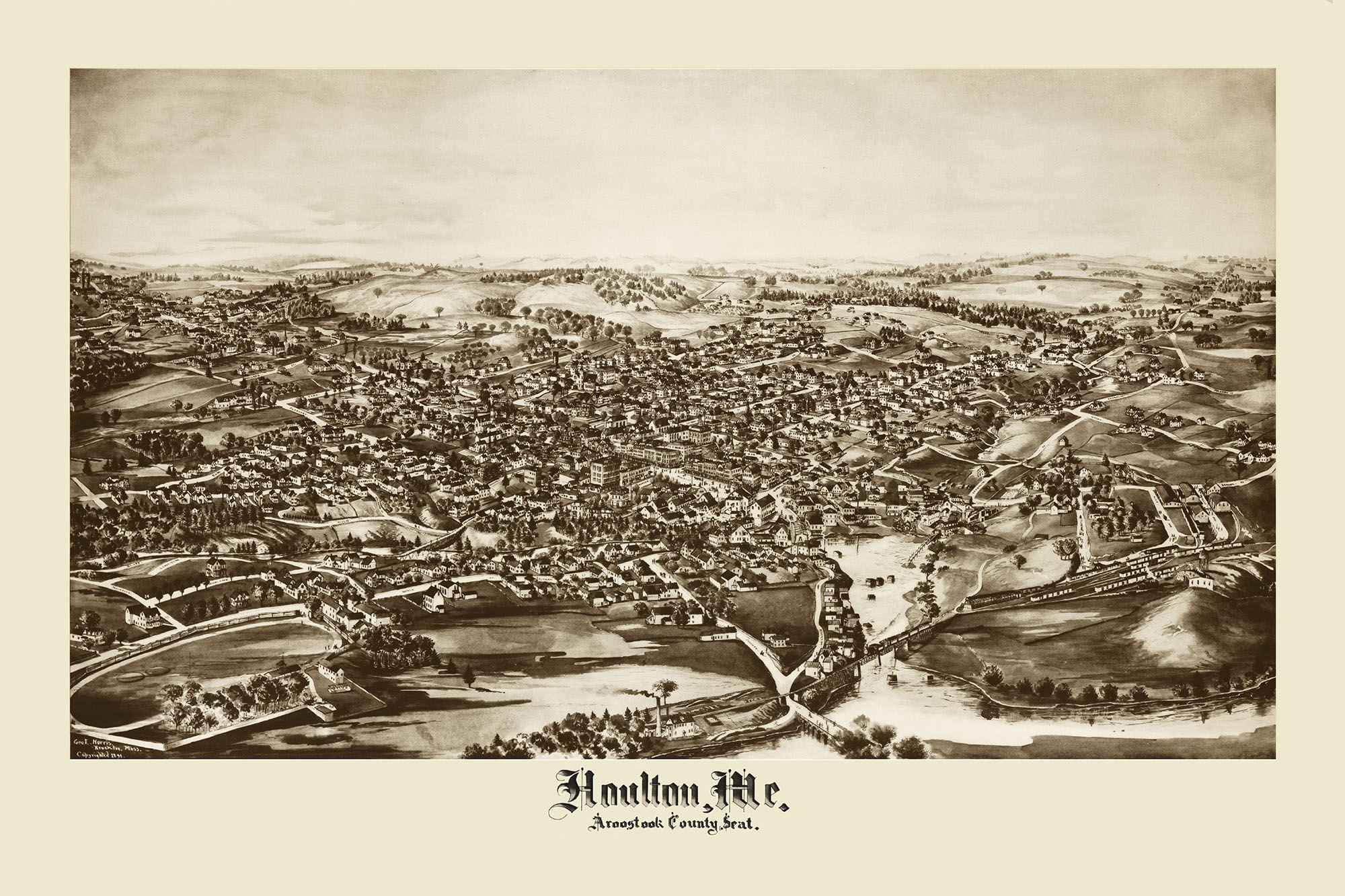 Houlton, ME in 1894 - Bird's Eye View Map, Aerial, Panorama, Vintage, Antique, Reproduction, Giclée, Framable, Fine Art, Home Decor