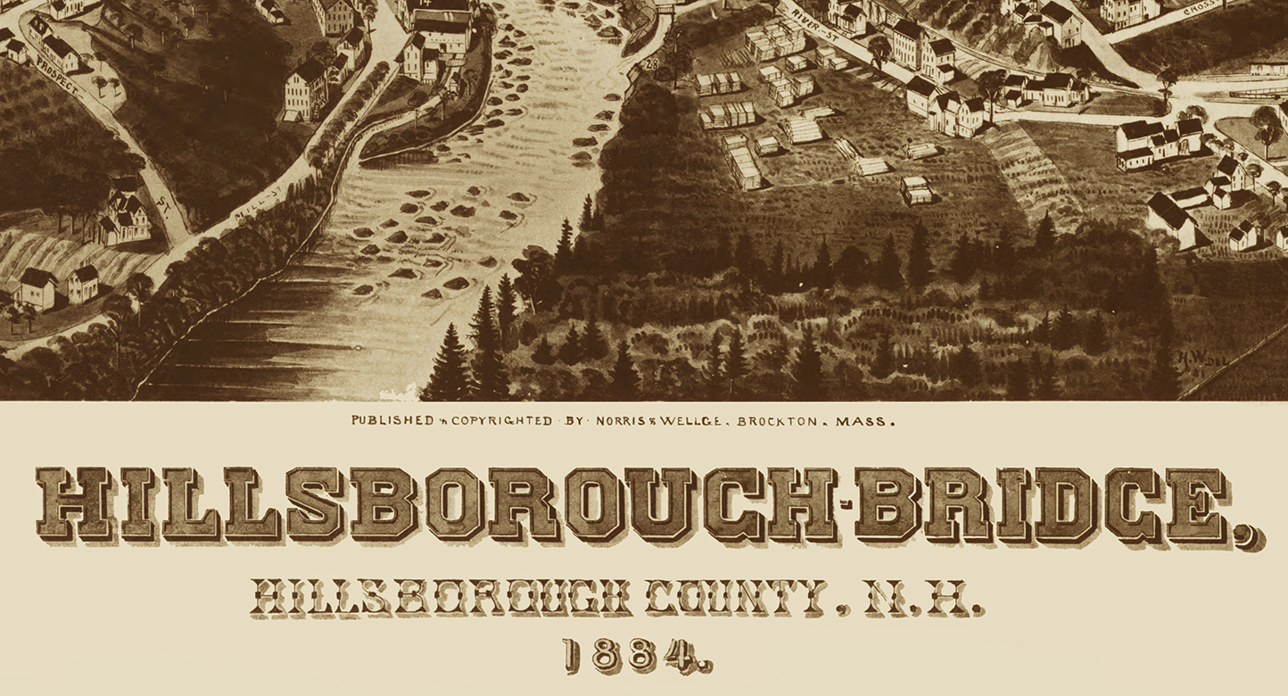 Hillsborough-Bridge, NH in 1884 - Bird's Eye View Map, Aerial, Panorama, Vintage, Antique, Reproduction, Giclée, Framable, Fine Art