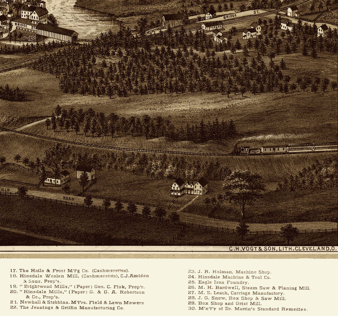 Hinsdale, NH in 1886 - Bird's Eye View Map, Aerial, Panorama, Vintage, Antique, Reproduction, Giclée, Framable, Fine Art