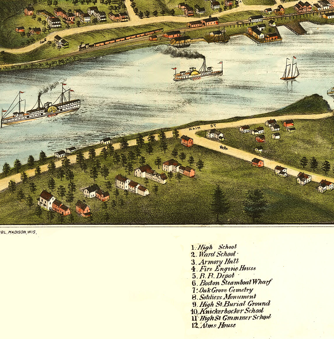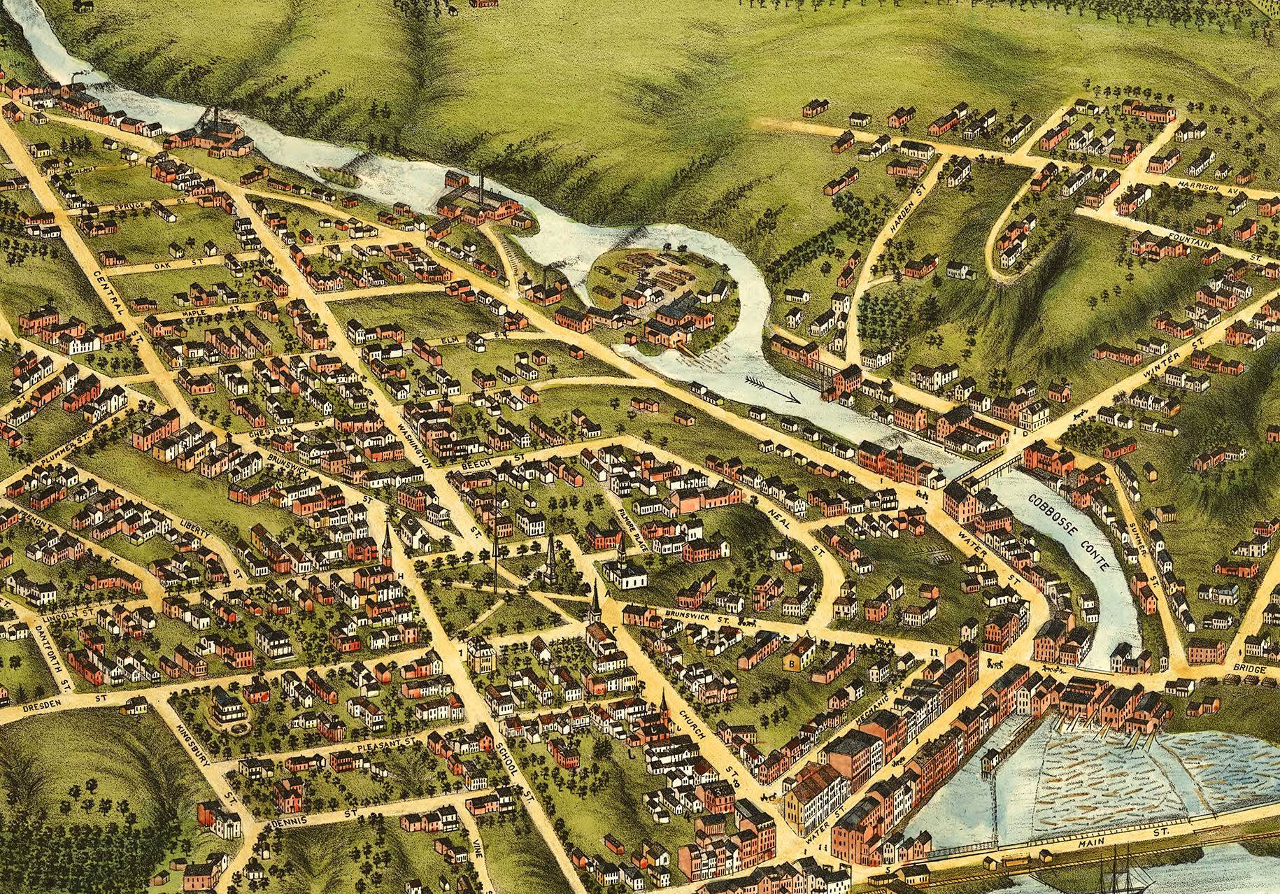 Gardiner and Pittston, Maine in 1878 - Bird's Eye View Map, Aerial, Panorama, Vintage, Antique, Reproduction, Giclée, Framable, Fine Art