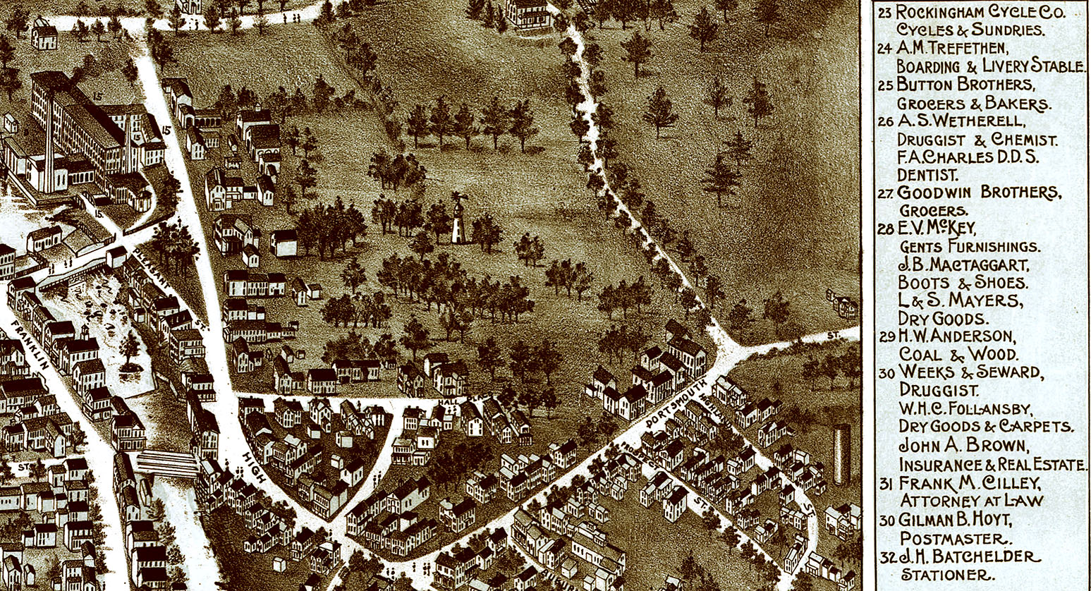 Exeter, NH in 1896 - Bird's Eye View Map, Aerial, Panorama, Vintage, Antique, Reproduction, Giclée, Framable, Fine Art