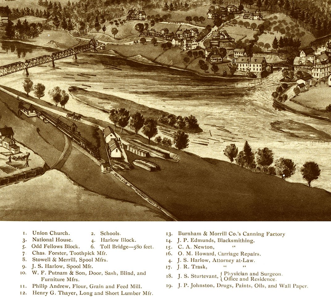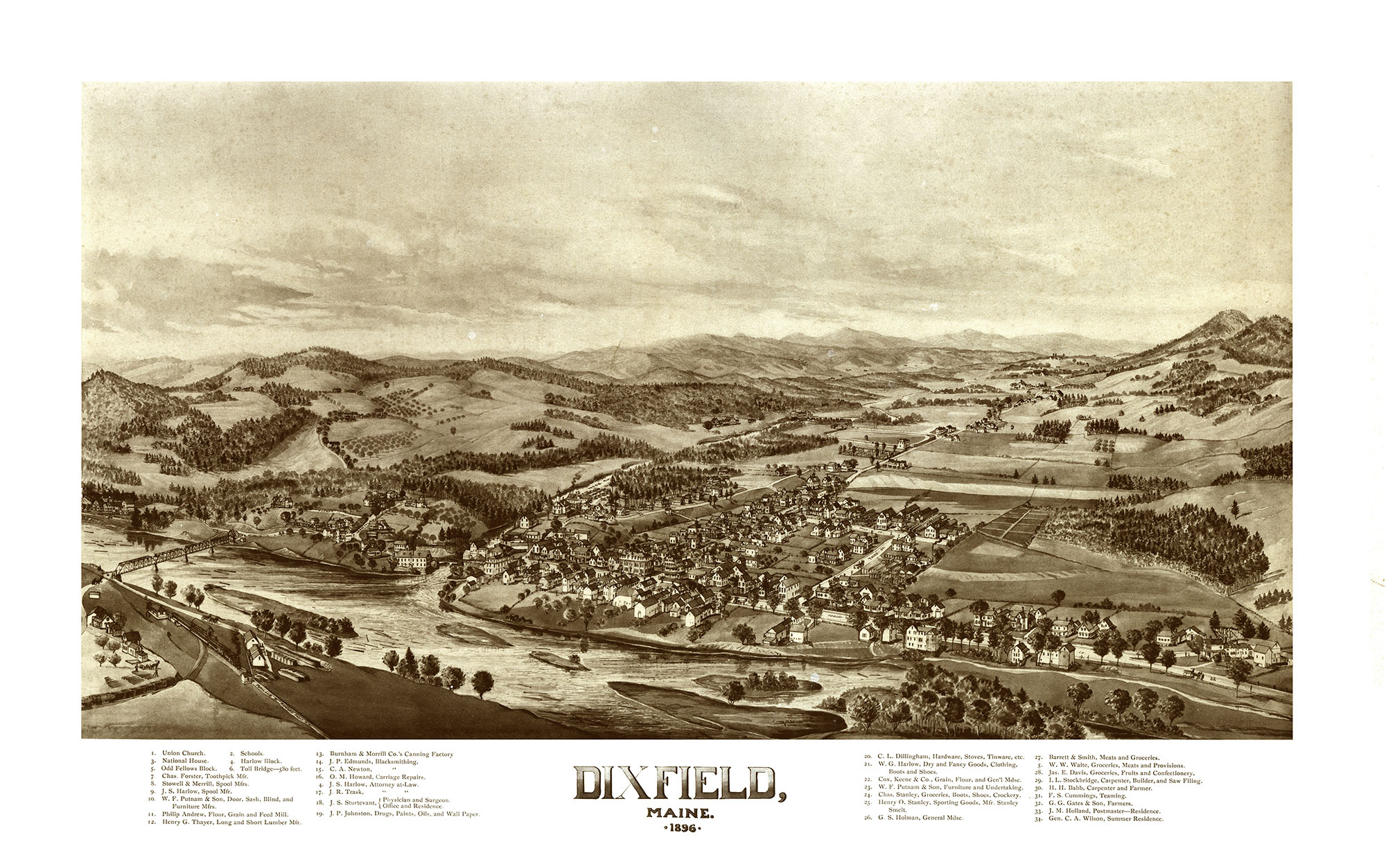 Dixfield, Maine in 1896 - Bird's Eye View Map, Aerial, Panorama, Vintage, Antique, Reproduction, Giclée, Framable, Fine Art