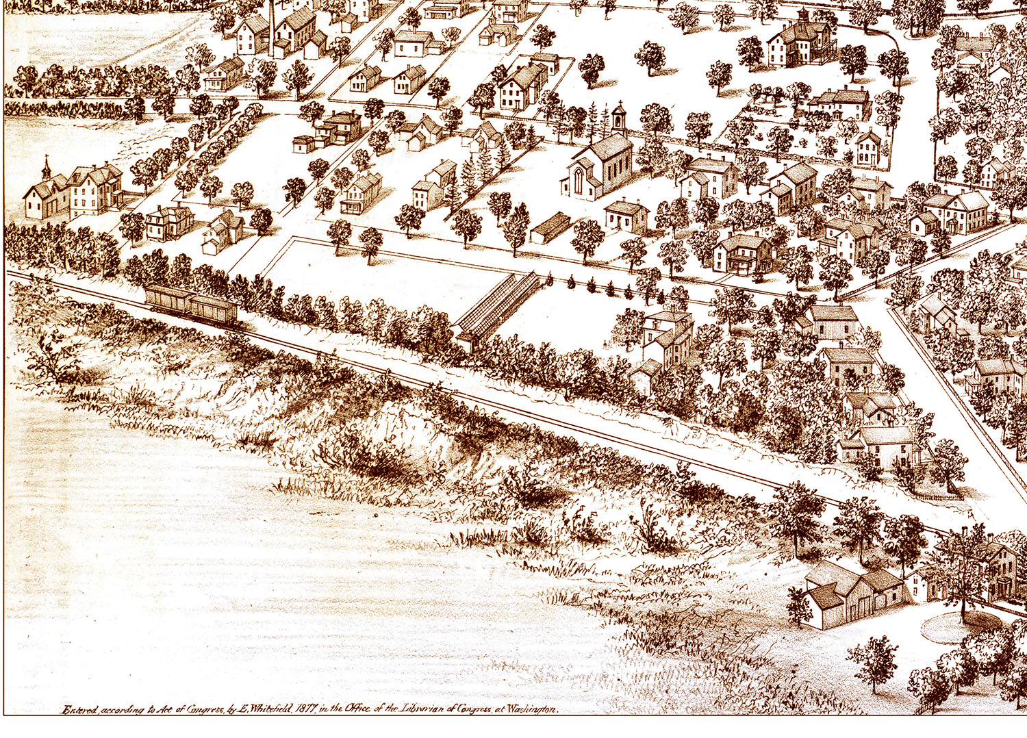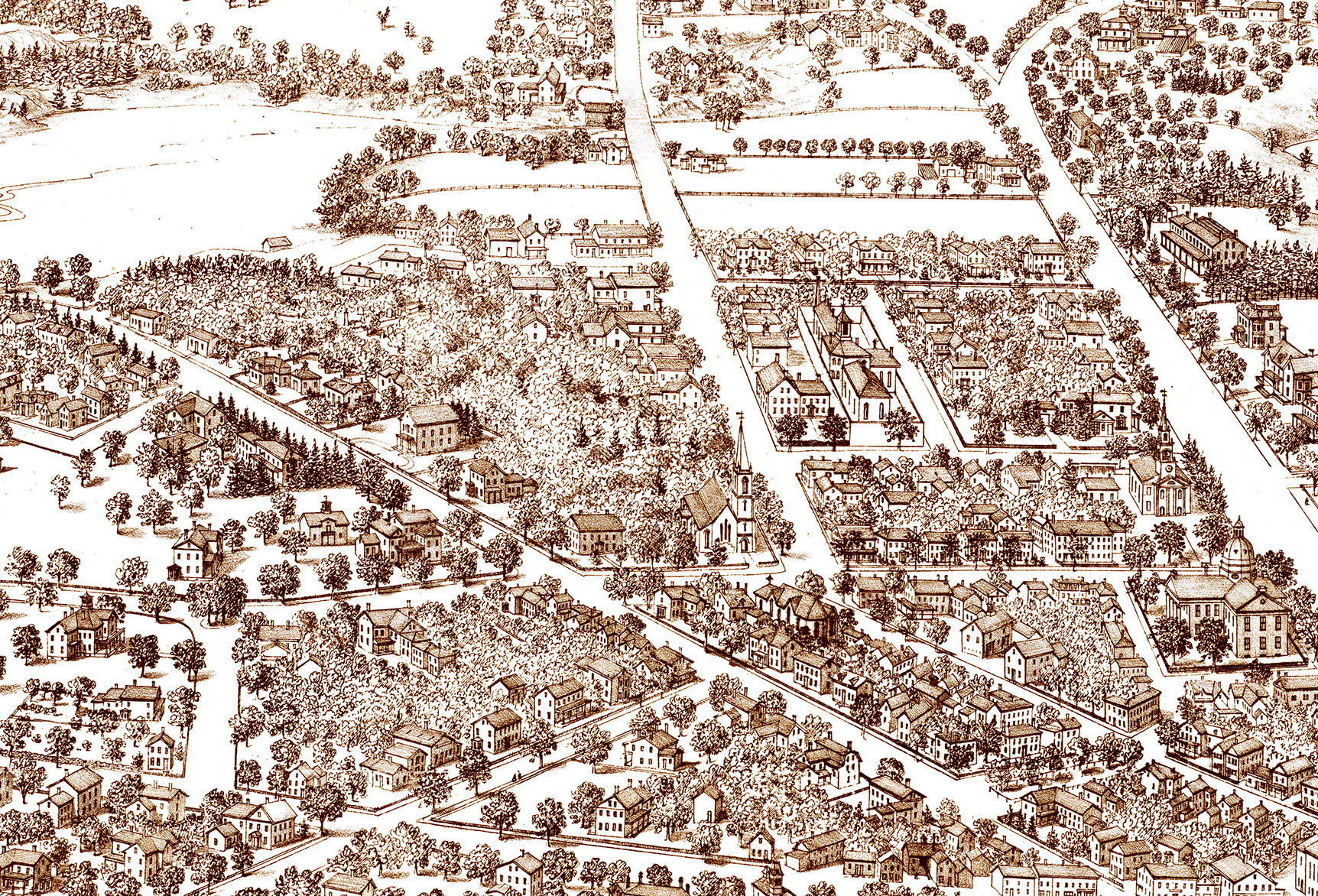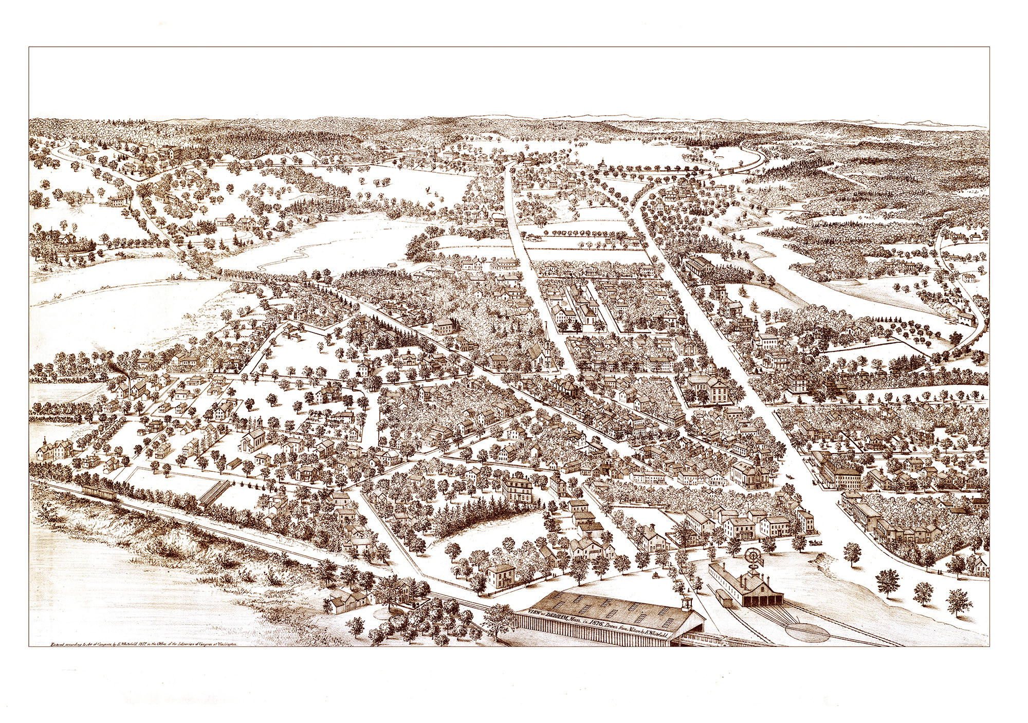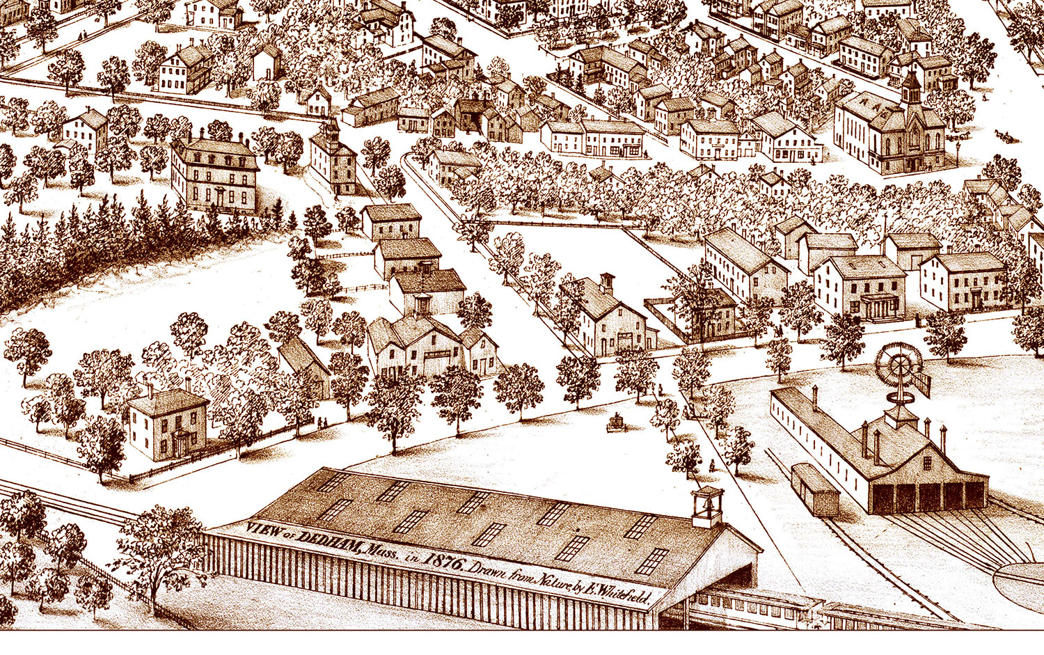 Dedham, MA in 1876 - Bird's Eye View Map, Aerial map, Panorama map, Vintagemap, Antique map, Reproduction, Giclée, Framable map, Fine Art