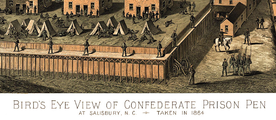 CSA Prison Pen, Salisbury NC 1864 - Bird's Eye View Map, Aerial, Panorama, Vintage, Antique, Reproduction, Giclée, Framable Art