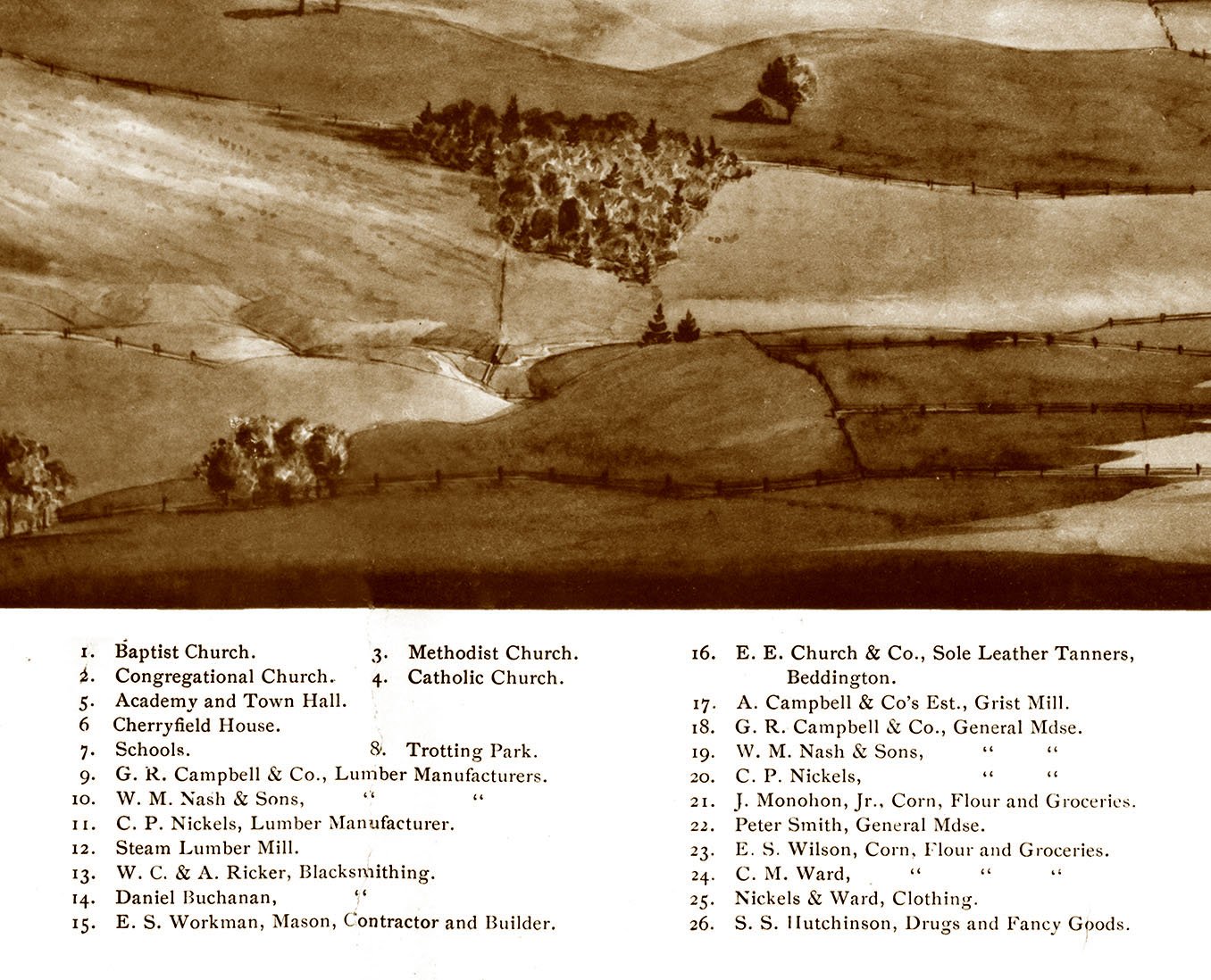Cherryfield, Maine in 1896 - Bird's Eye View Map, Aerial, Panorama, Vintage, Antique, Reproduction, Giclée, Framable, Fine Art
