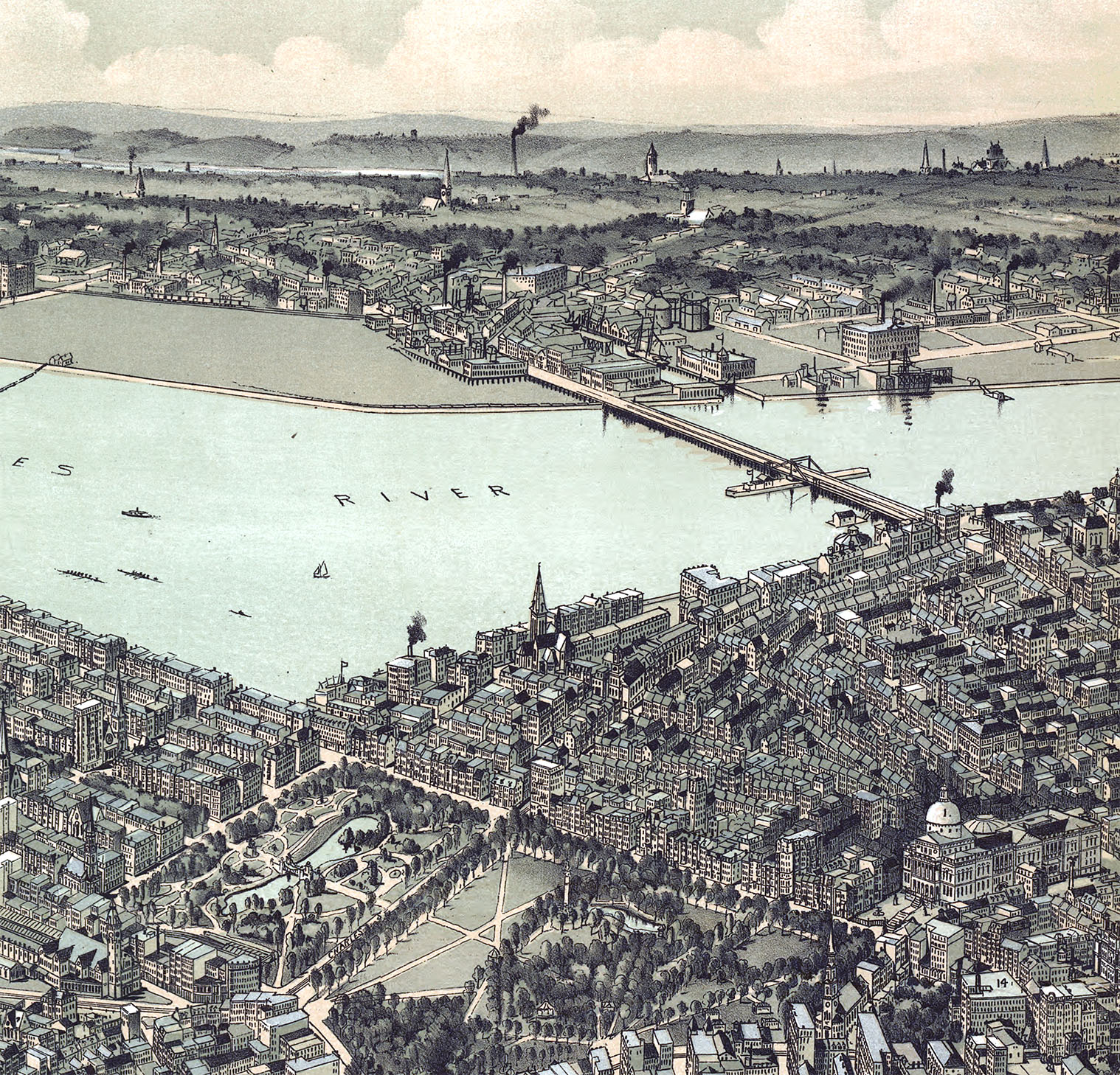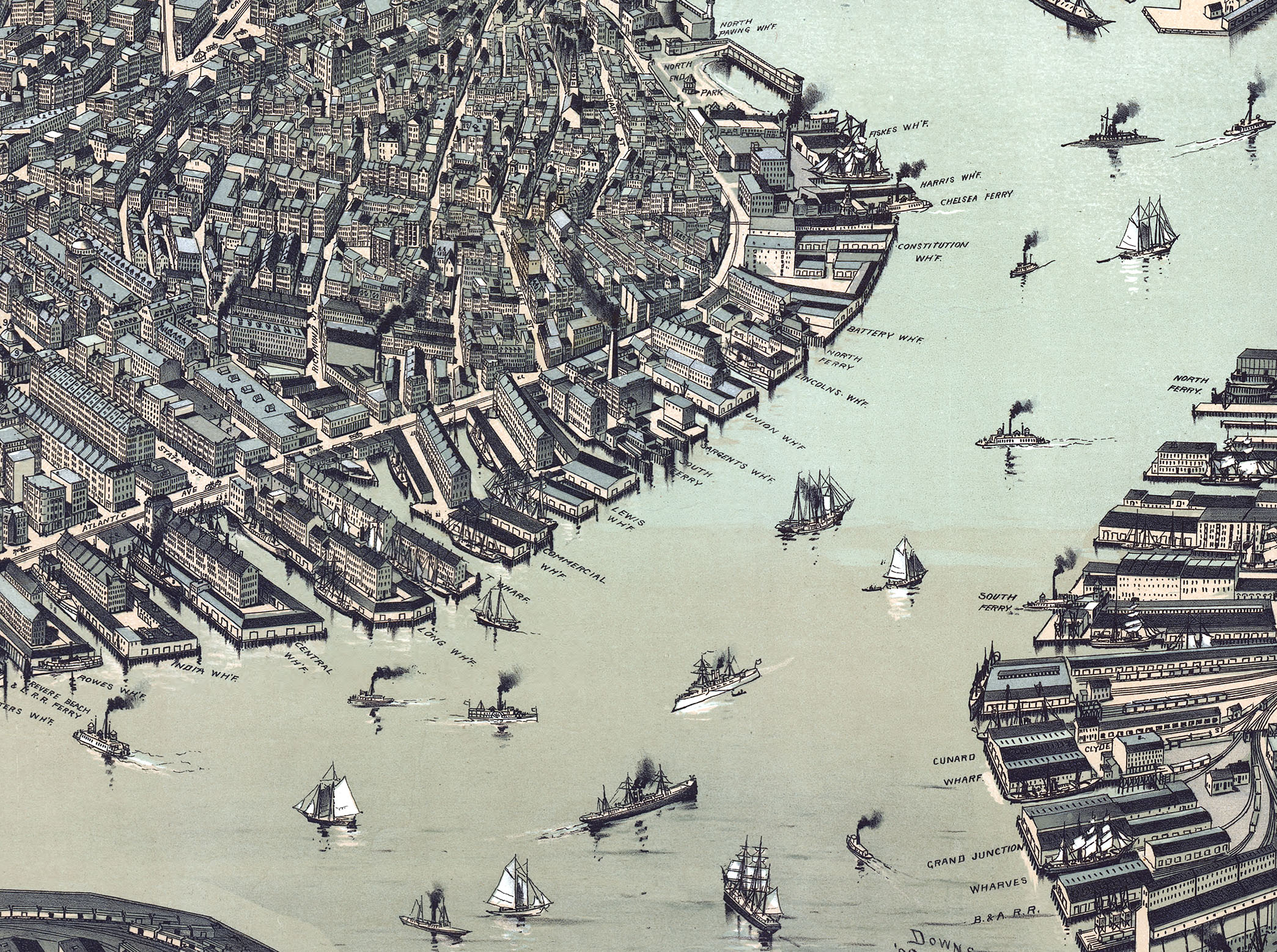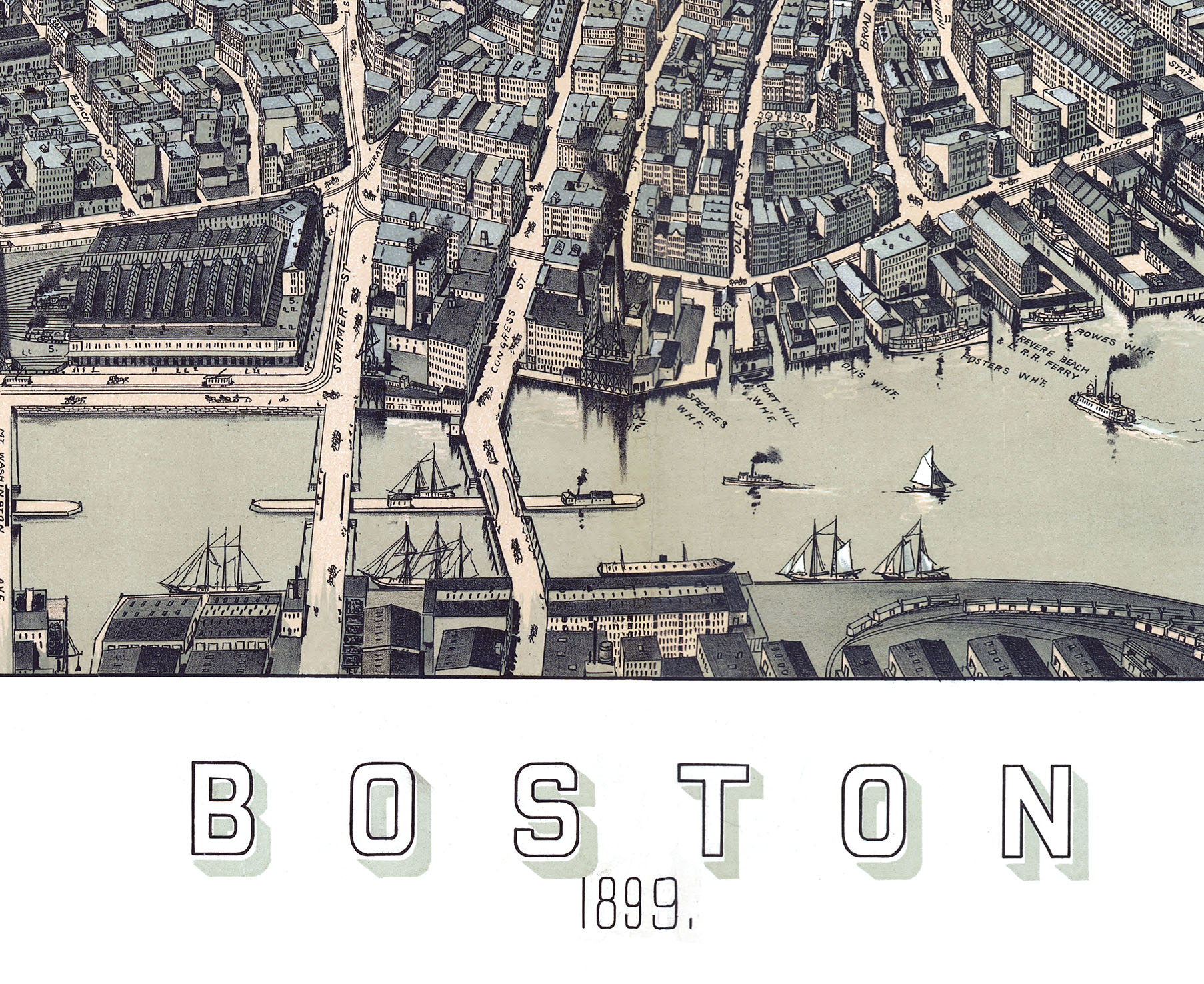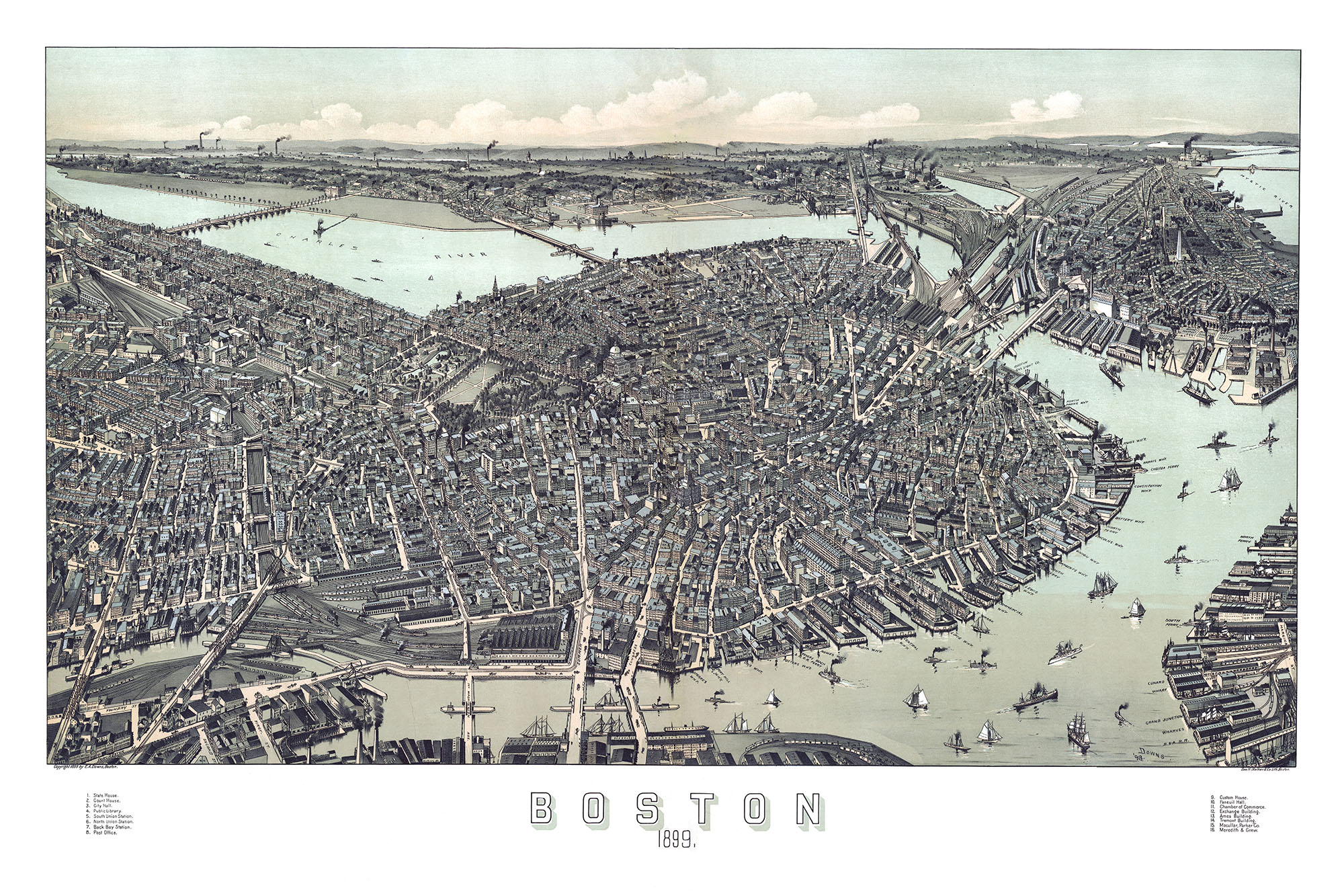Boston, MA in 1899 - Bird's Eye View Map, Aerial, Panorama, Vintage, Antique, Reproduction, Giclée, Framable, Fine Art