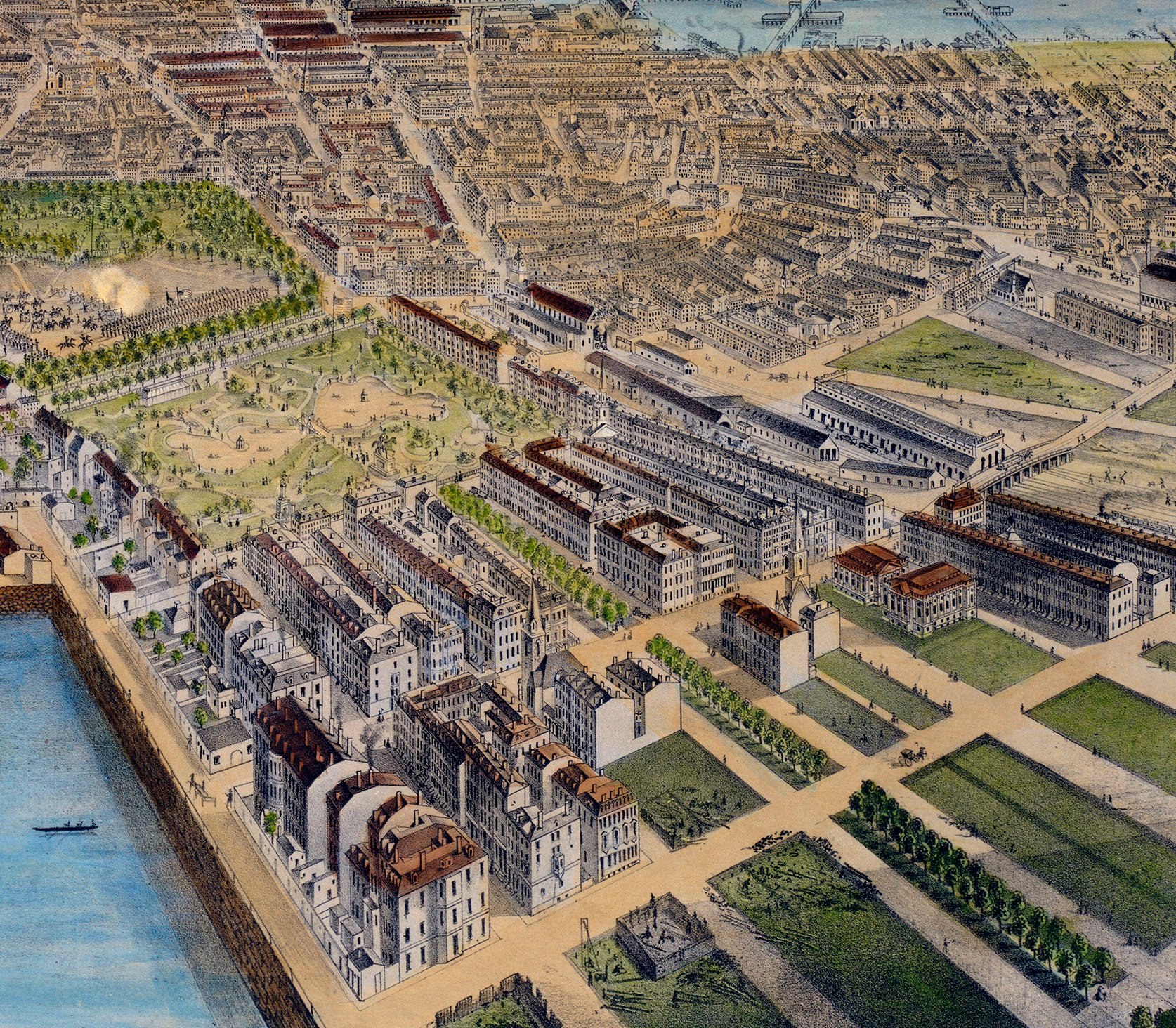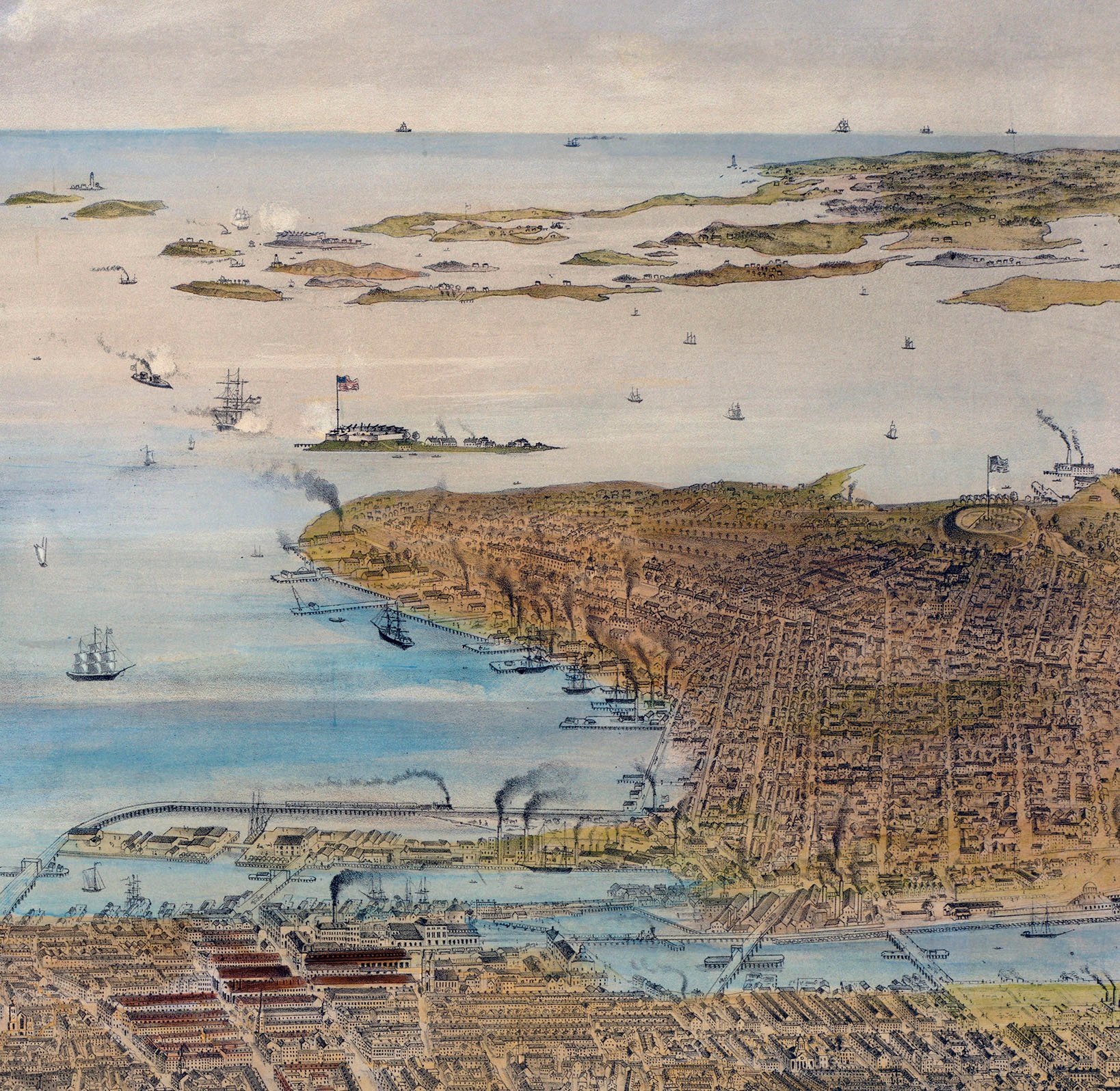 Boston, MA in 1870 - Bird's Eye View Map, Aerial, Panorama, Vintage, Antique, Reproduction, Giclée, Framable, Fine Art