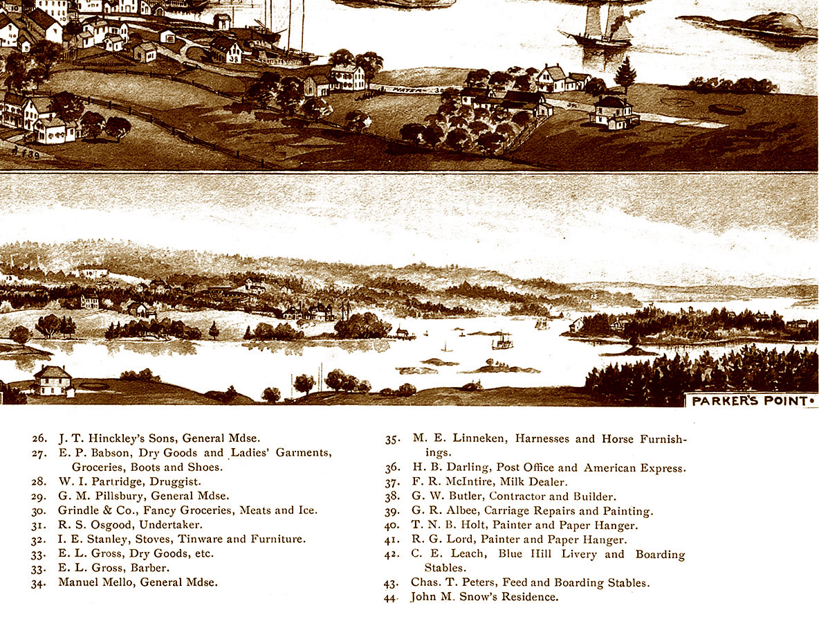 Blue Hill, Maine in 1896 - Bird's Eye View Map, Aerial, Panorama, Vintage, Antique, Reproduction, Giclée, Framable, Fine Art