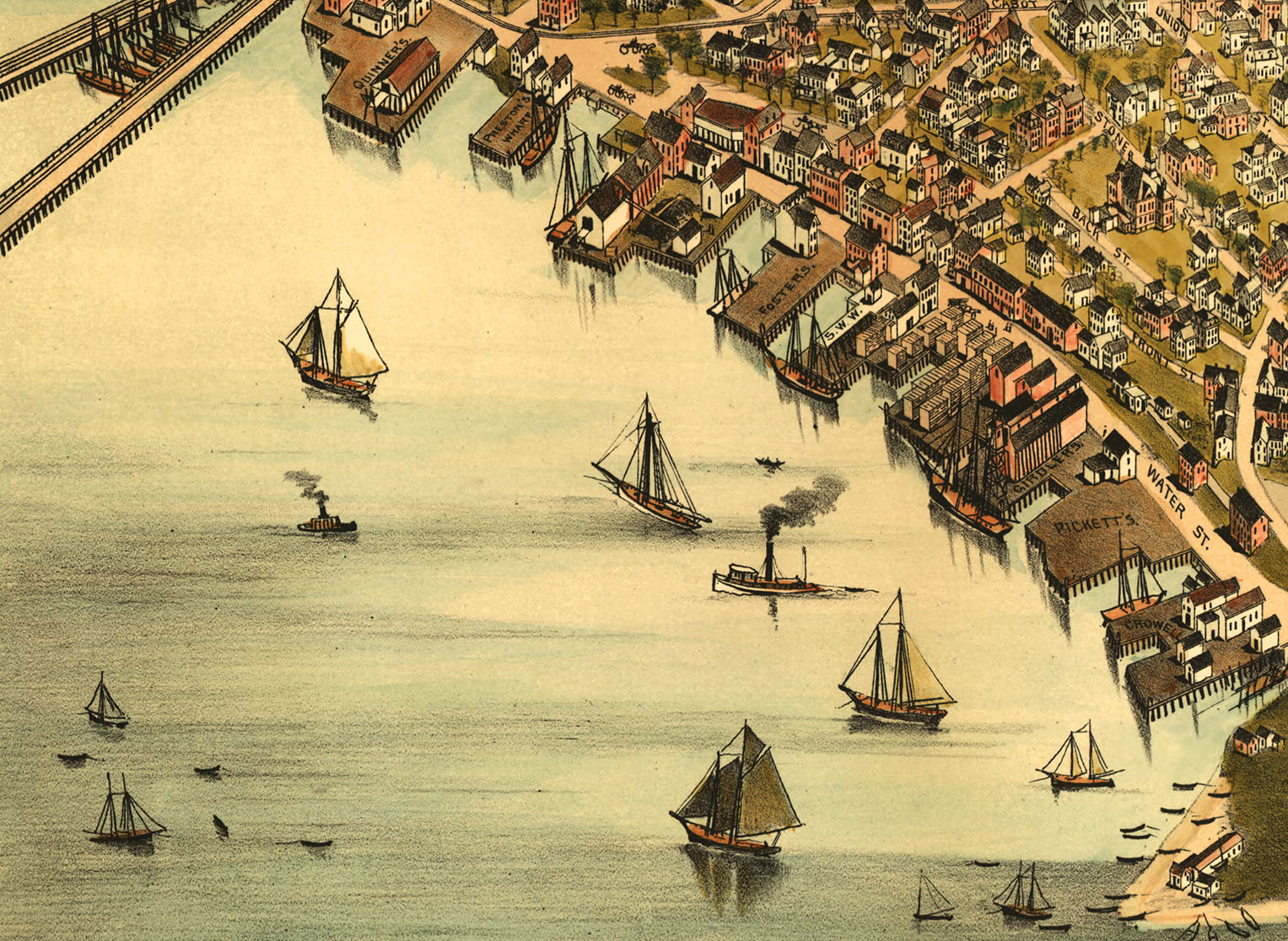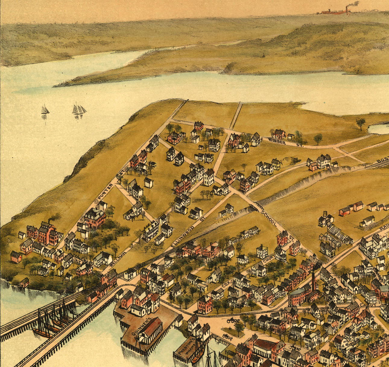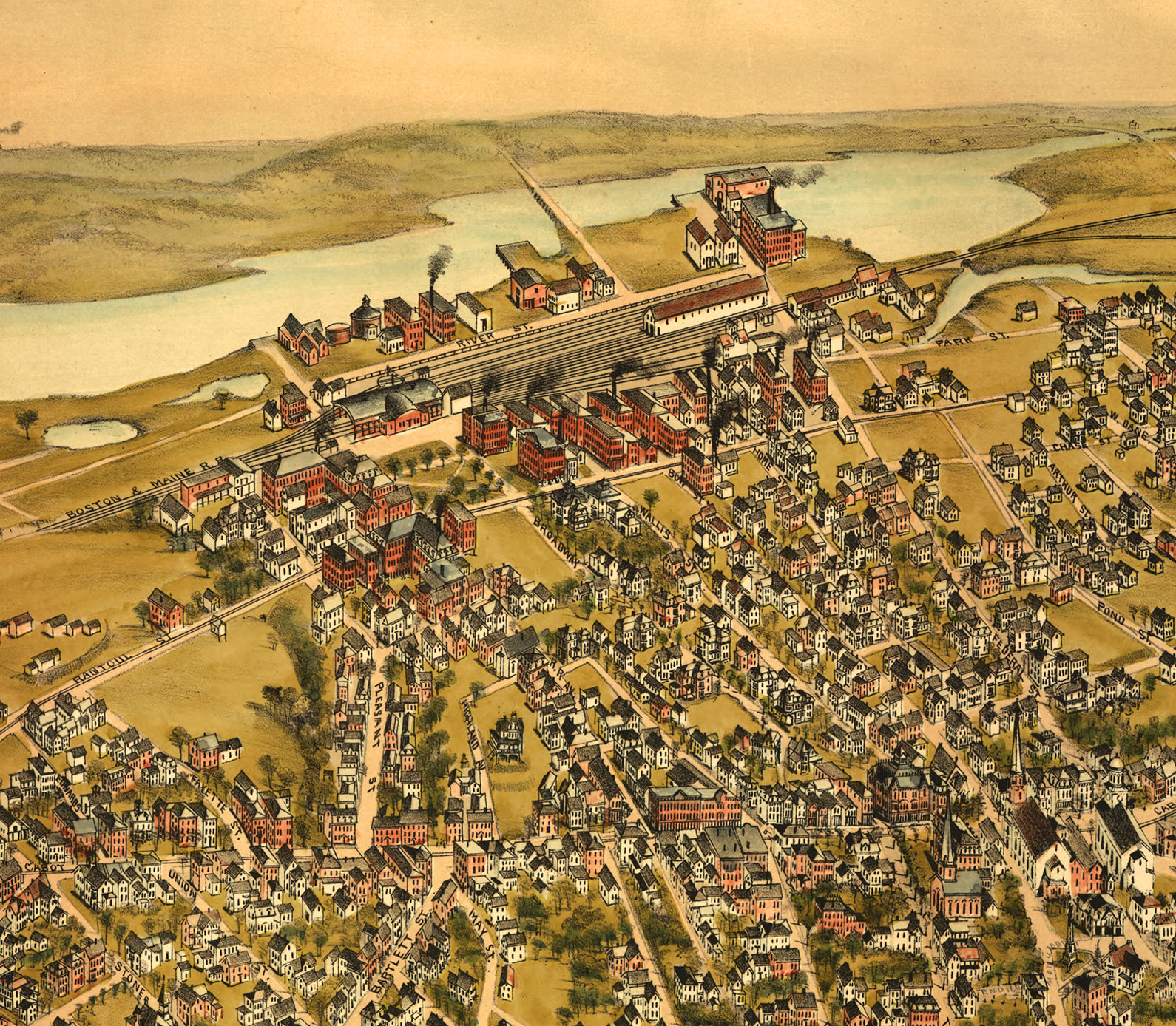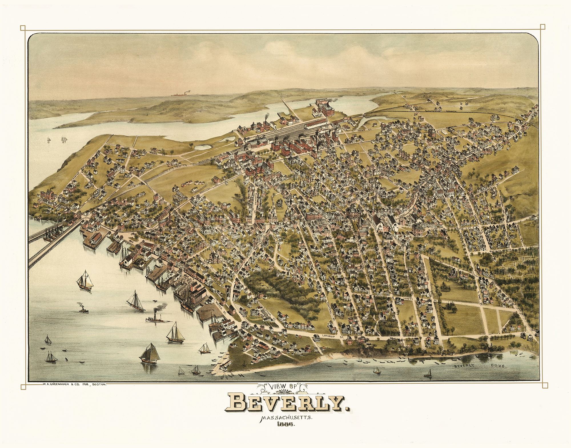 Beverly, MA in 1886 - Bird's Eye View Map, Aerial Map, Panorama Map, Vintage Map, Antique Map, Reproduction, Giclée, Framable Map, Fine Art