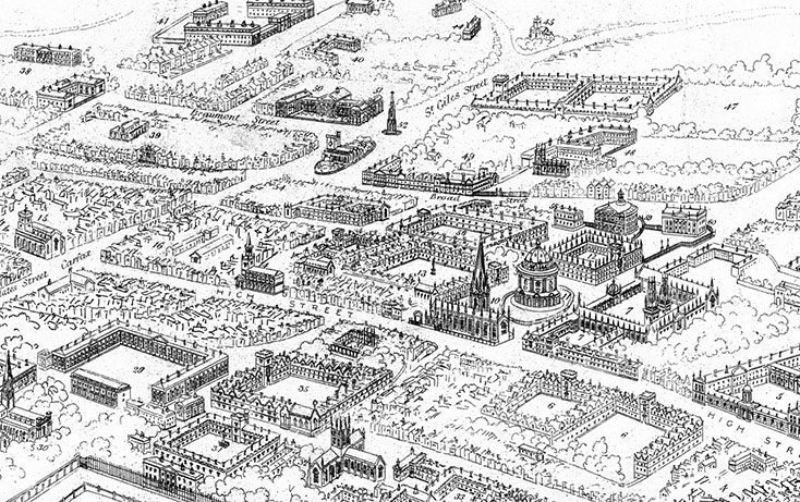 Key to Oxford, England: The City and the University in 1850 - Bird's Eye, Panorama, Vintage, Antique, Reproduction, Framable, Fine Art,