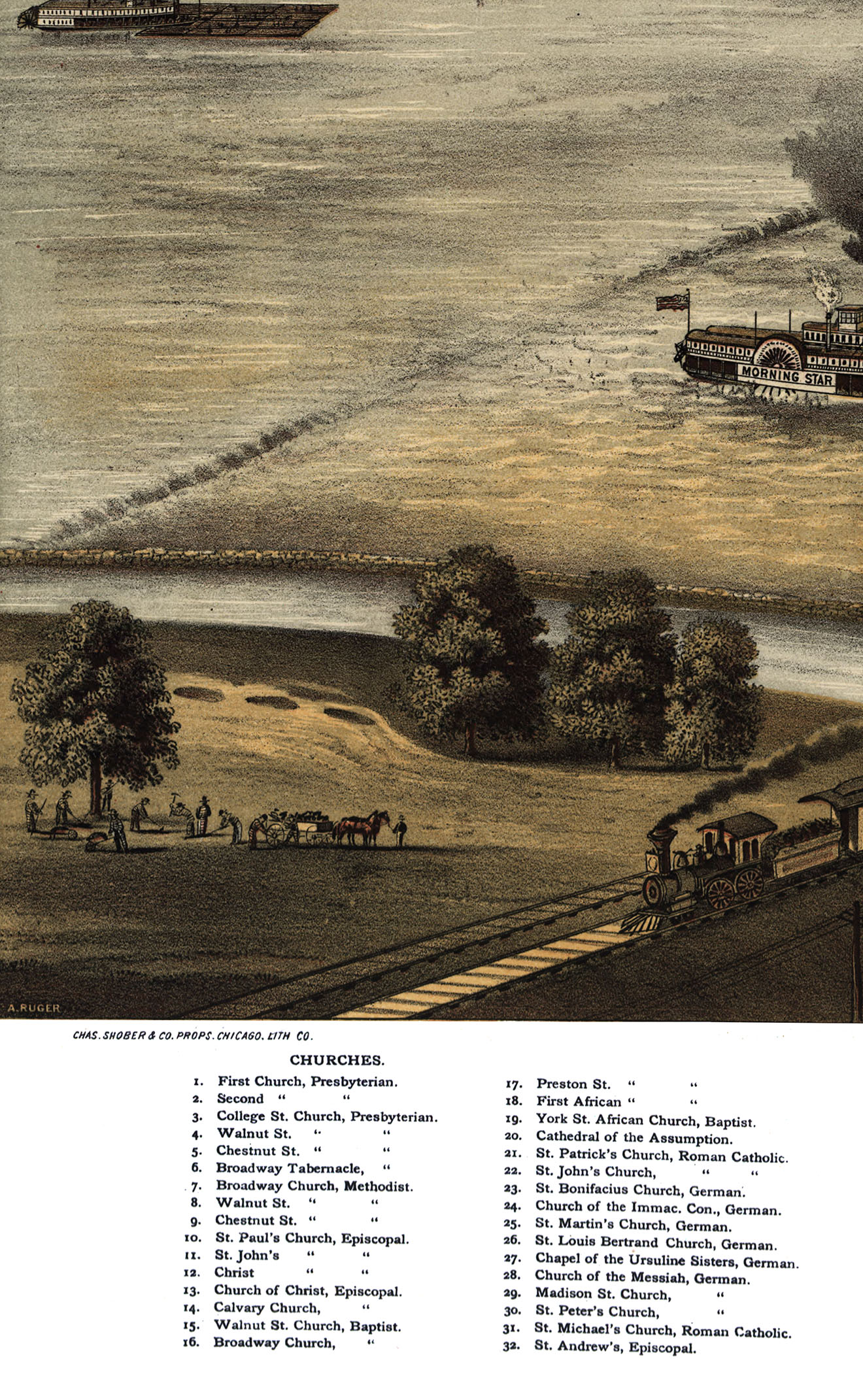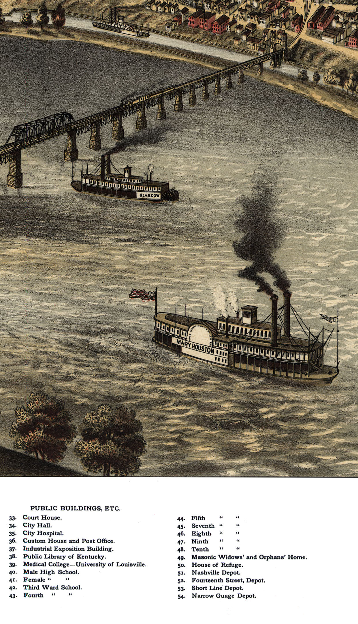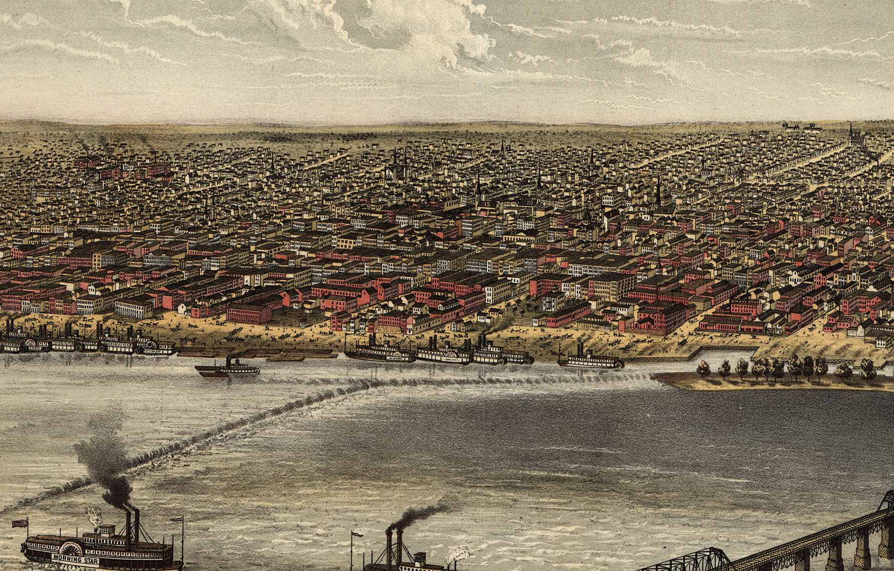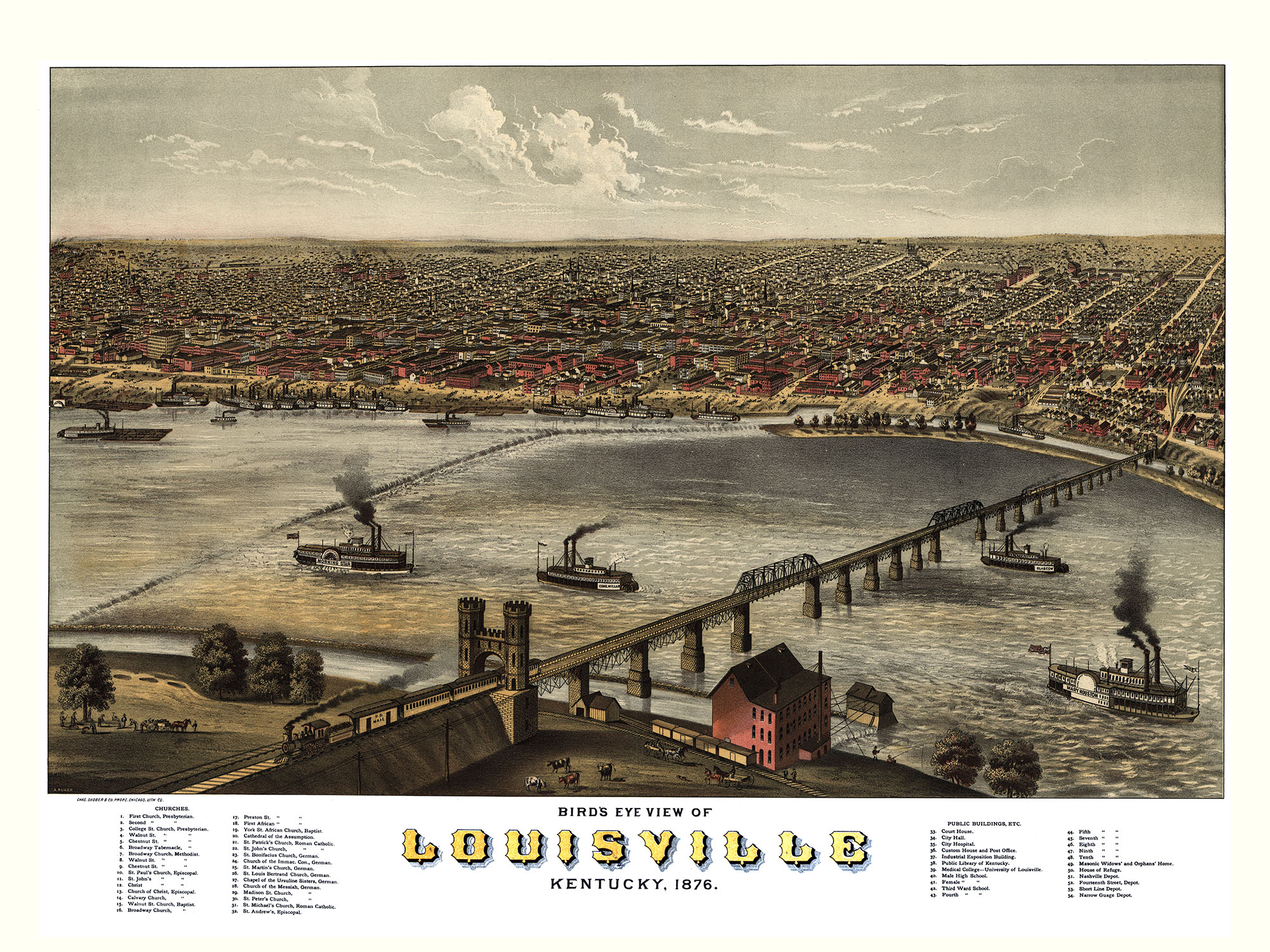 Louisville, KY in 1876 - Bird's Eye View Map, Aerial Map, Panorama, Vintage map, Antique map, Reproduction, Giclée, Framable map, Fine Art