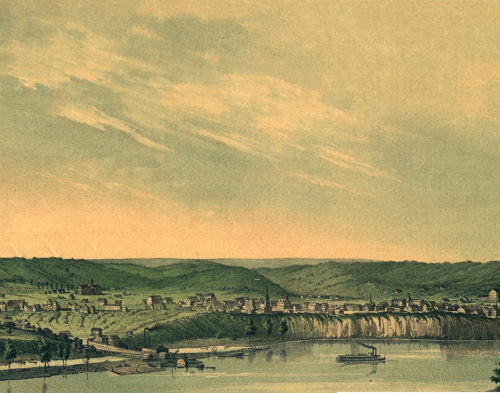 St. Paul, MN in 1853 - Bird's Eye View Map, Aerial, Panorama, Vintage, Antique, Reproduction, Giclée, Framable, Fine Art, Wall art