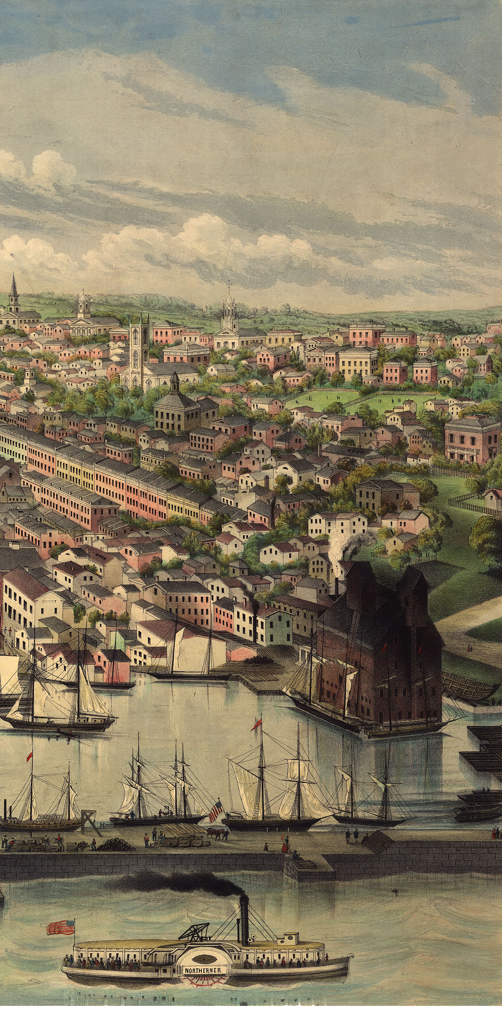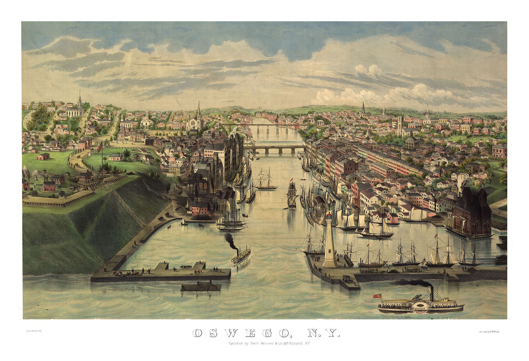 Oswego, New York in 1855 - Bird's Eye View Map, Aerial, Panorama, Vintage, Antique, Reproduction, Giclée, Framable, Fine Art, Wall art
