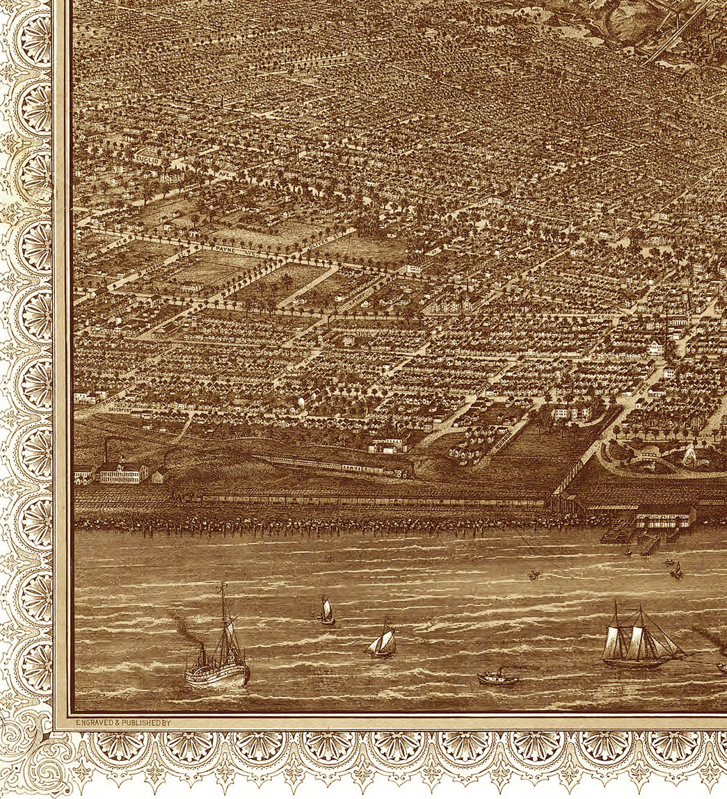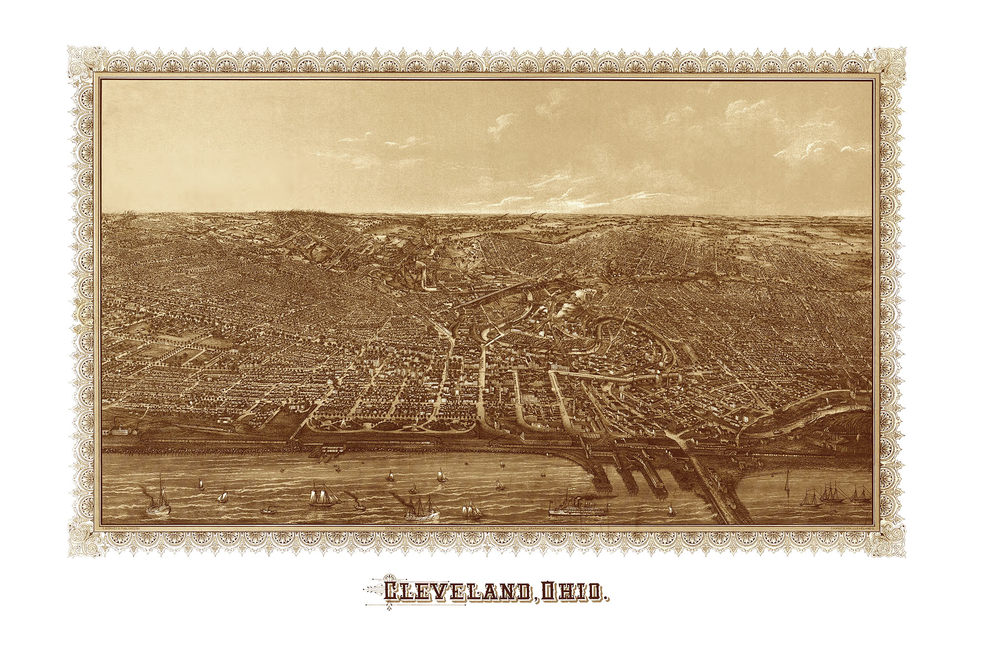 Cleveland, Ohio in 1887 - Bird's Eye View Map, Aerial, Panorama map, Vintage map, Antique map, Reproduction, Giclée, Framable map, Fine Art