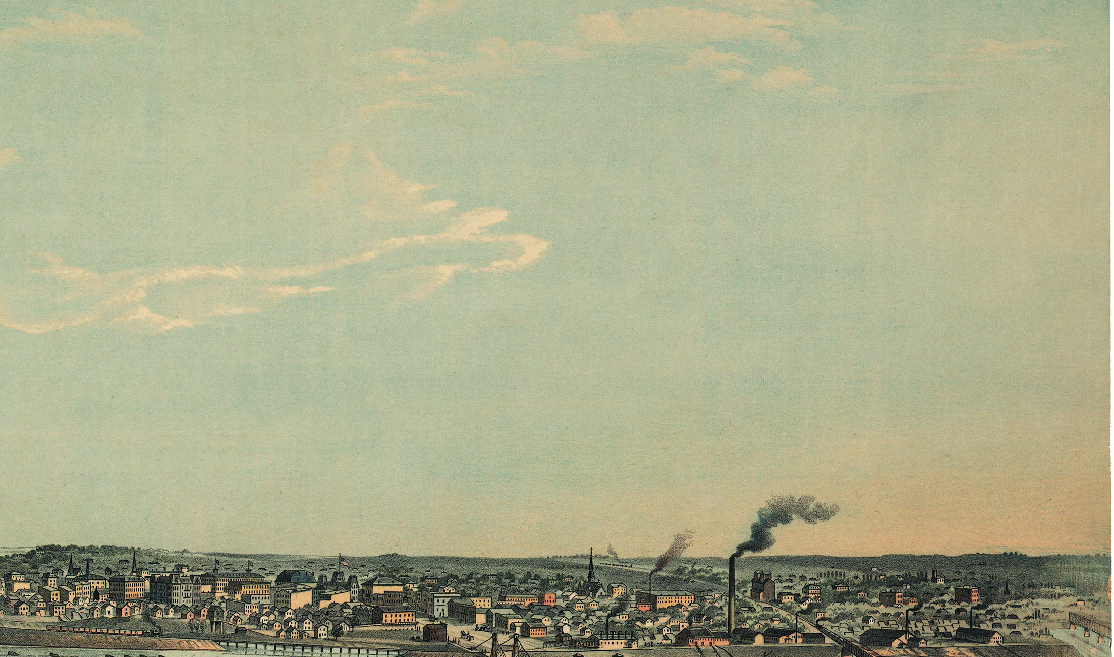 Full color fine art map of Minneapolis, MN in 1853. Brilliant color, fine detail is remarkable.