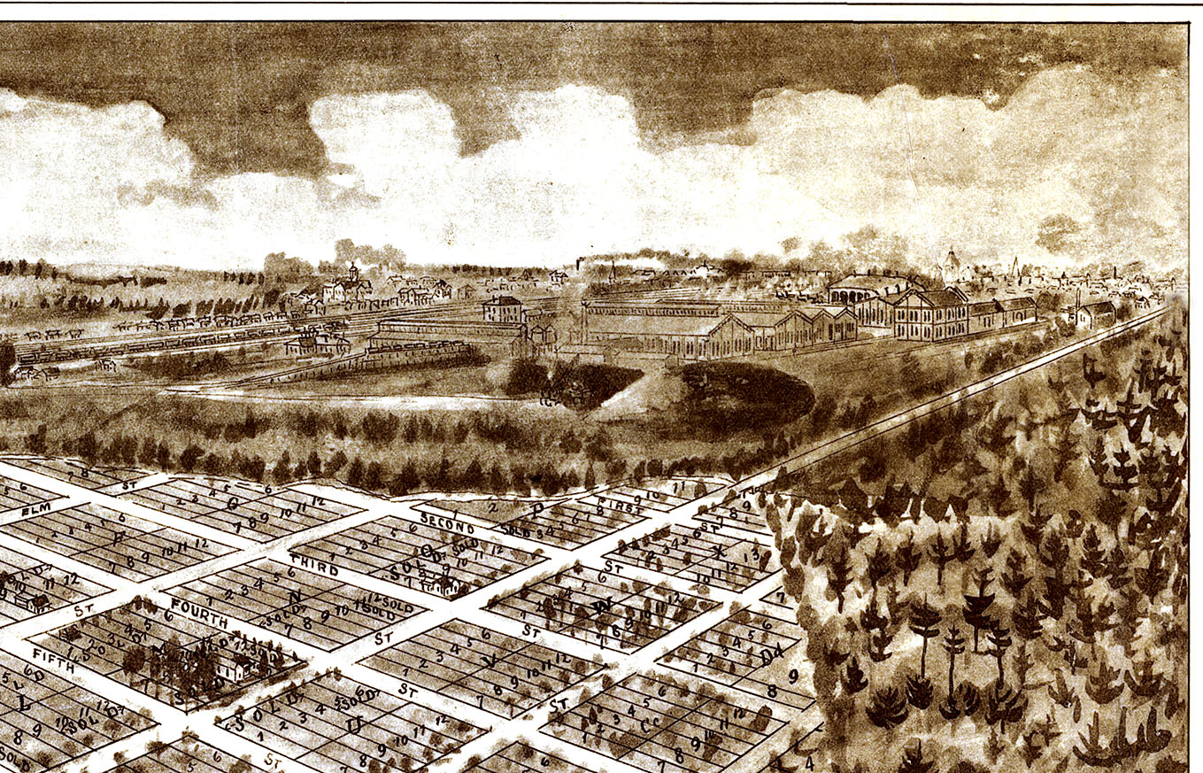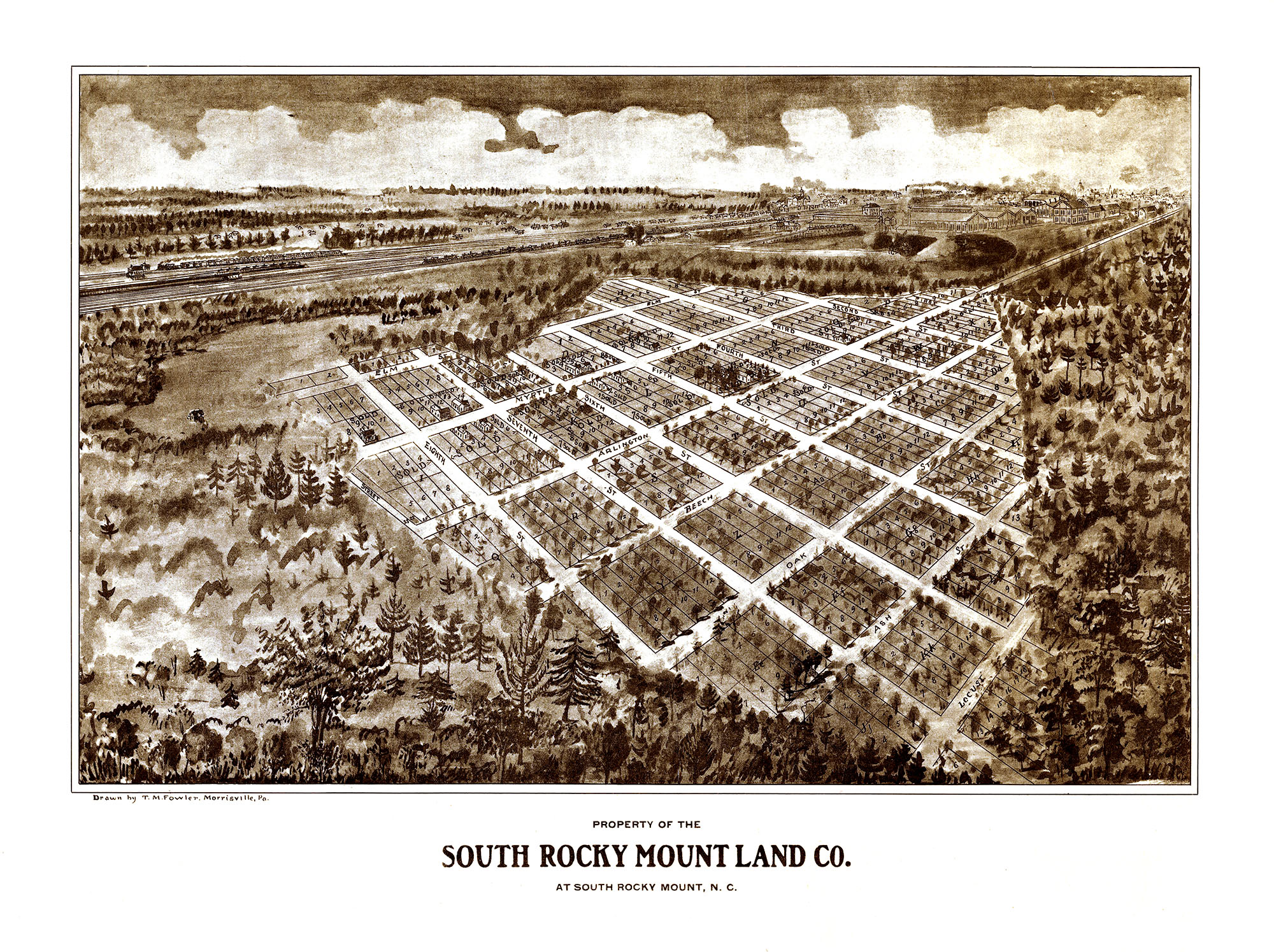 South Rocky Mount, North Carolina in 1900 - Bird's Eye View, Aerial, Panorama, Vintage, Antique, Giclée, Framable, Fine Art, Wall Art