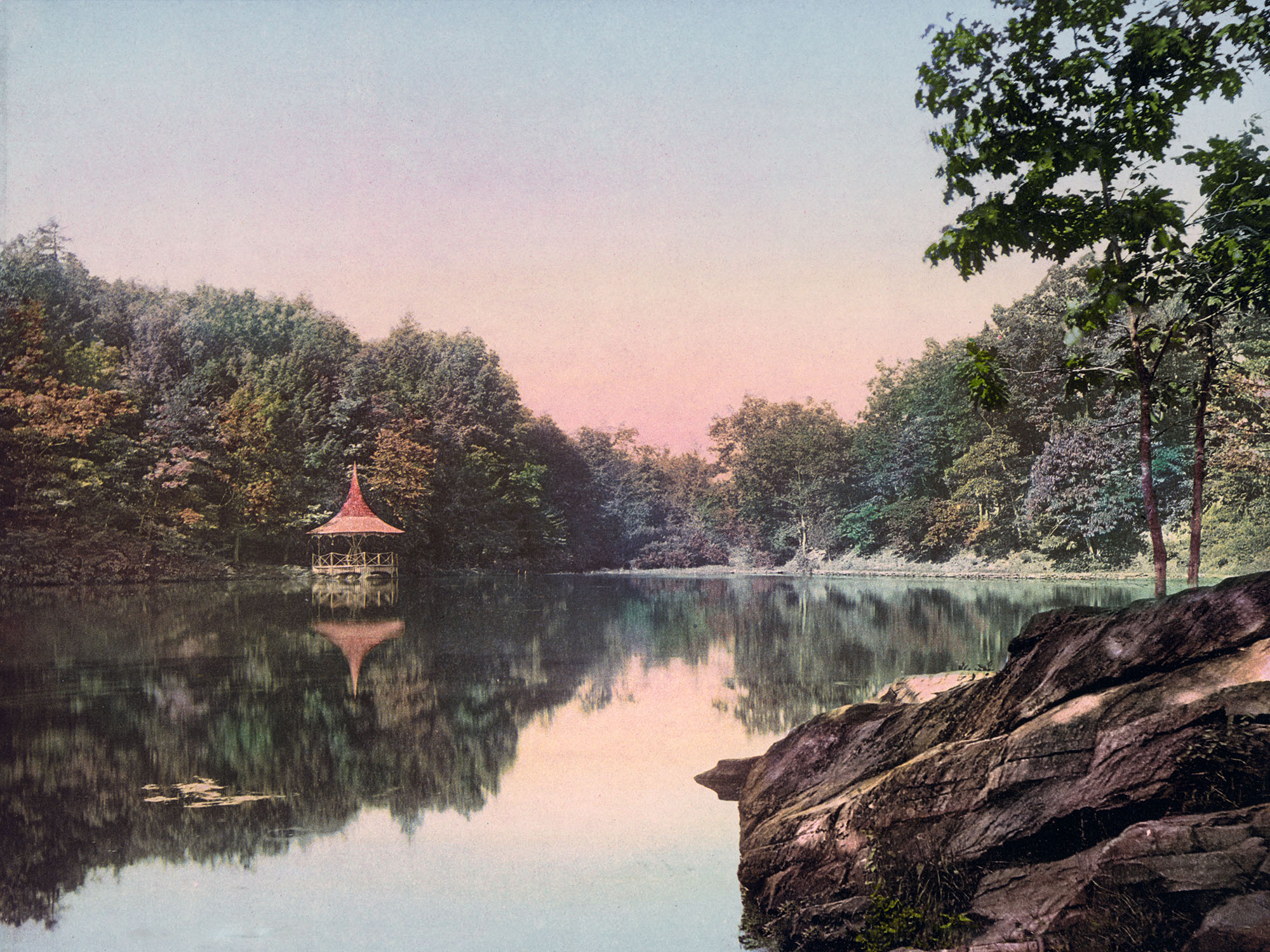 Extremely fine full color reproduction of 1900 photograph of Lake Lenape, New Jersey, Delaware Water Gap. Vibrant colors, remarkable detail. Available in a variety of sizes; contact me if you desire a size not listed.