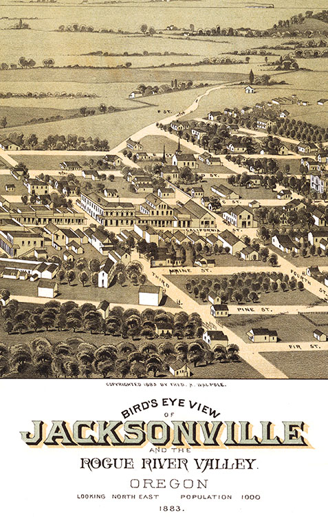 Jacksonville, Oregon in 1883 - Bird's Eye View Map, Aerial Map, Panorama, Vintage map, Antique map, Reproduction, Giclée, Fine Art, Wall Art