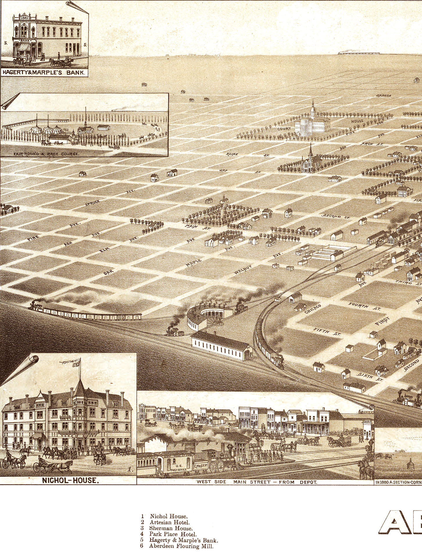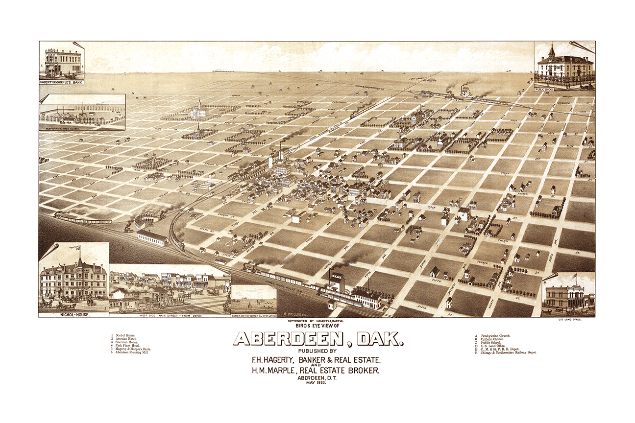 Aberdeen, South Dakota in 1883 - Bird's Eye View, Aerial Panorama, Vintage, Antique Map, Reproduction, Giclée, Fine Art, Wall Art, History