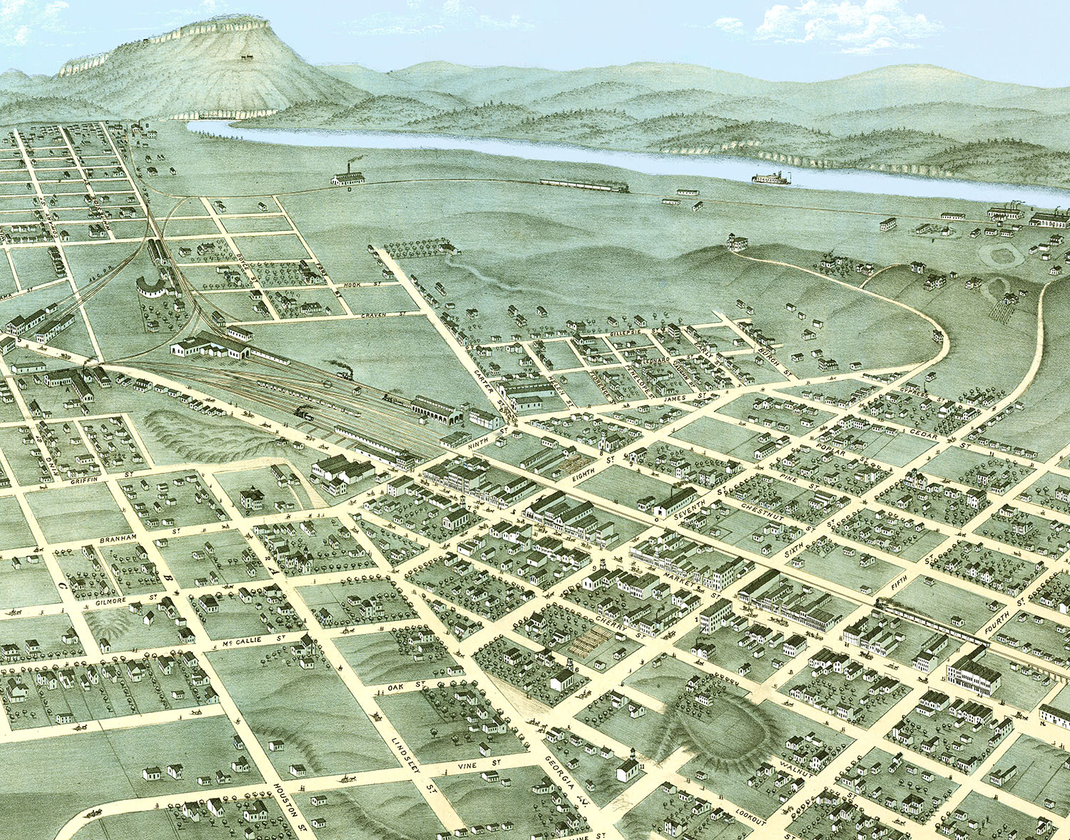 Chattanooga, Tennessee in 1871 - Bird's Eye View, Map, Aerial, Panorama, Vintage, Antique, Fine Art, Wall Art