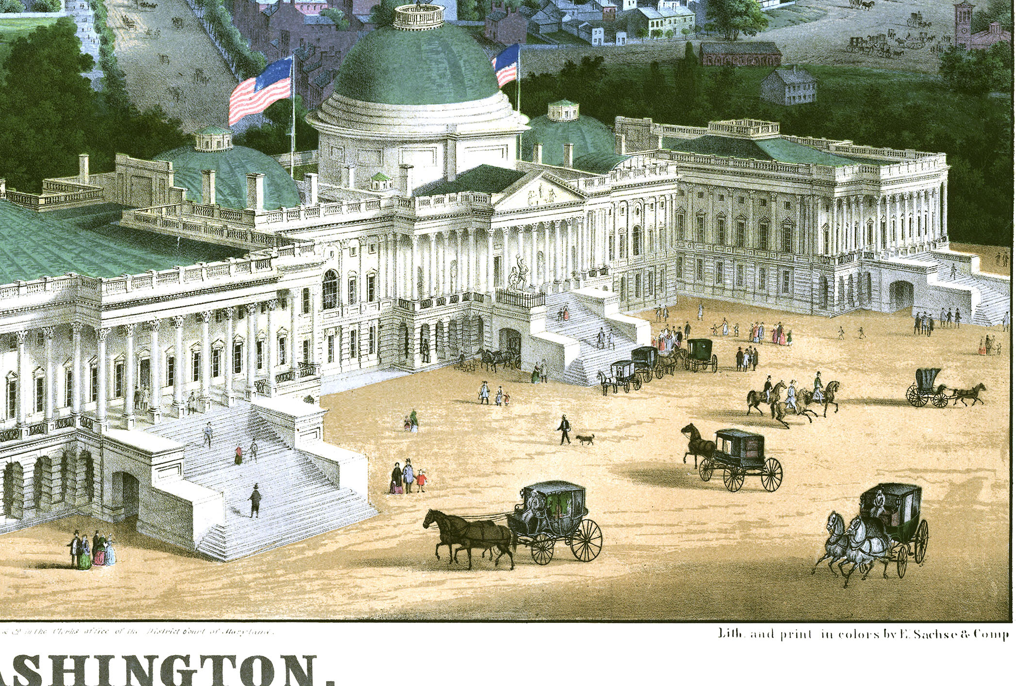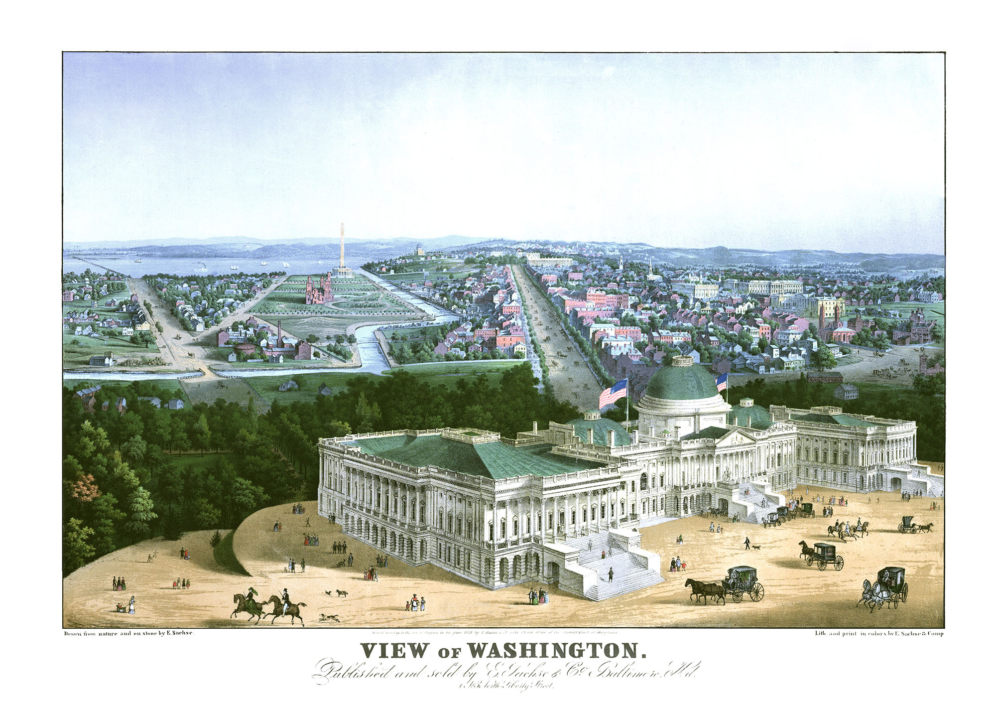 Washington, D.C in 1852 - Bird's Eye View, Map, Aerial, Panorama, Vintage, Antique, Reproduction, Giclée, Fine Art, Wall Art, History