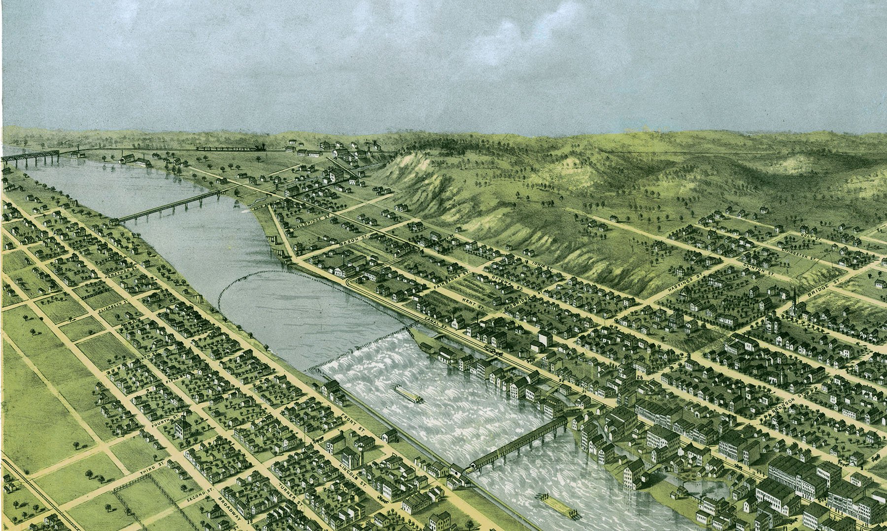 Grand Rapids, Michigan in 1868 - Bird's Eye View Map, Aerial, Panorama, Vintage, Antique, Reproduction, Giclée, Fine Art, Wall Art, History