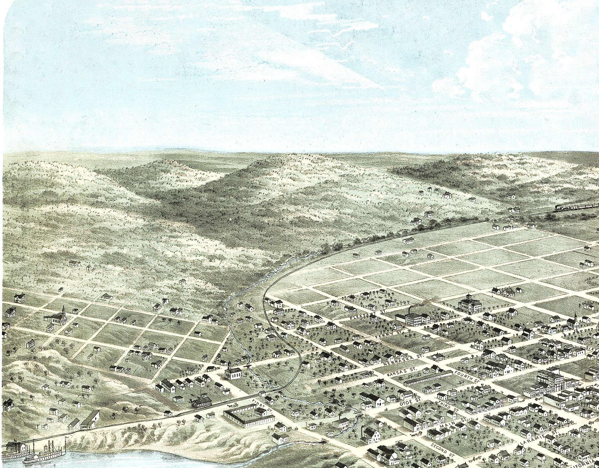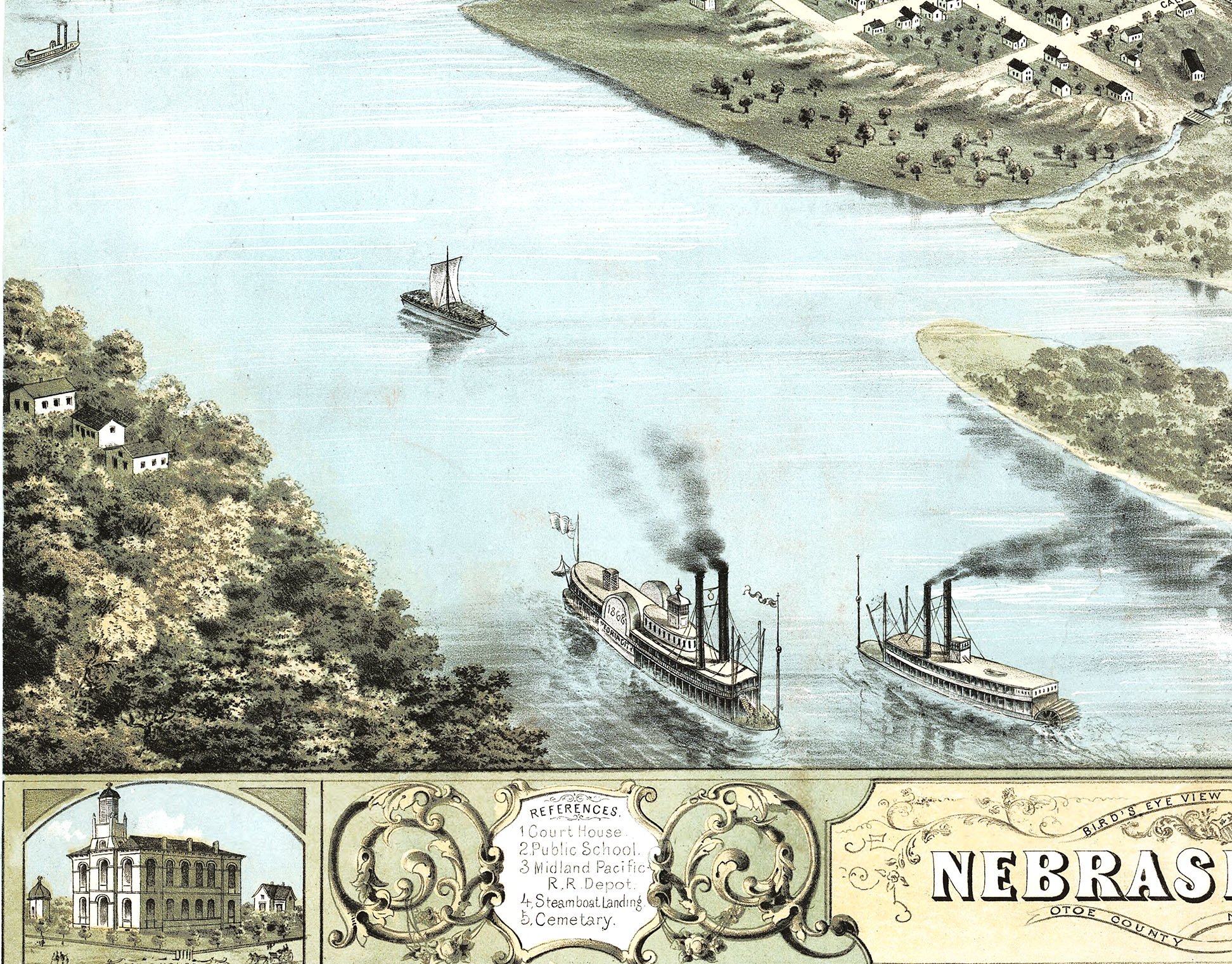 Nebraska City, Nebraska in 1868 - Bird's Eye View Map, Aerial, Panorama, Vintage map, Antique map, Giclée, Fine Art, Wall Art, History