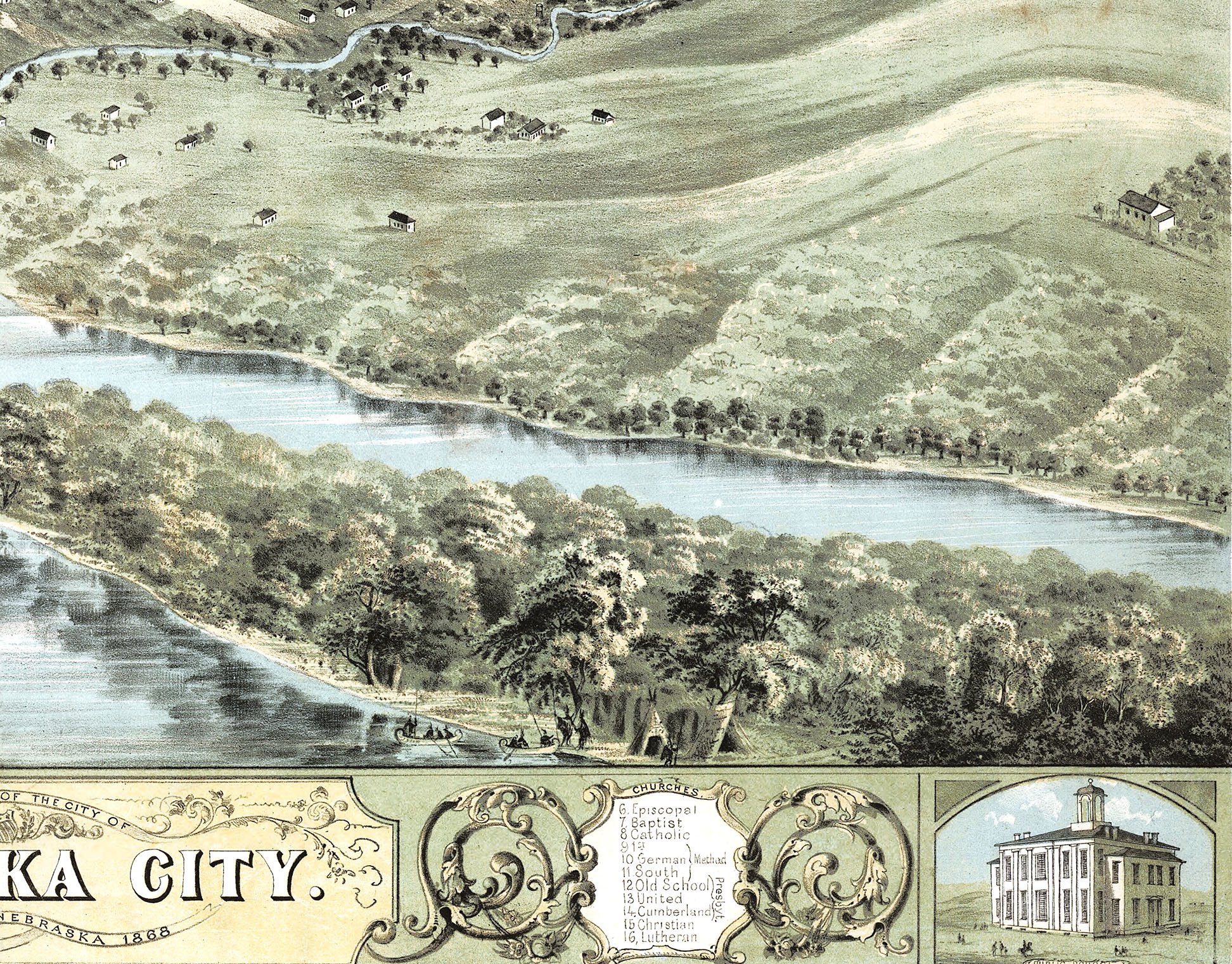 Full color fine art map of Nebraska City, Nebraska in 1868.