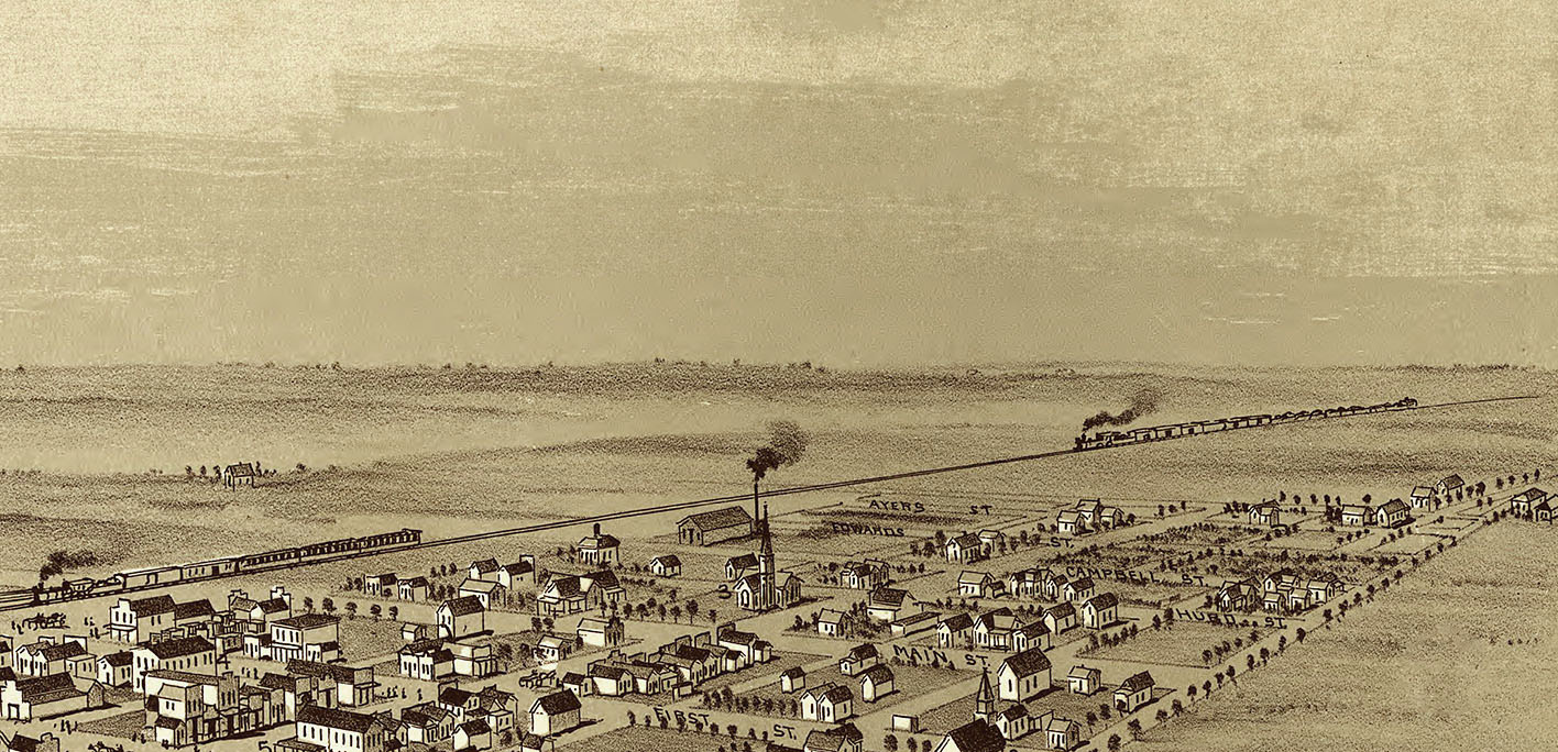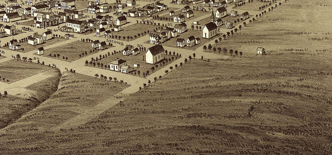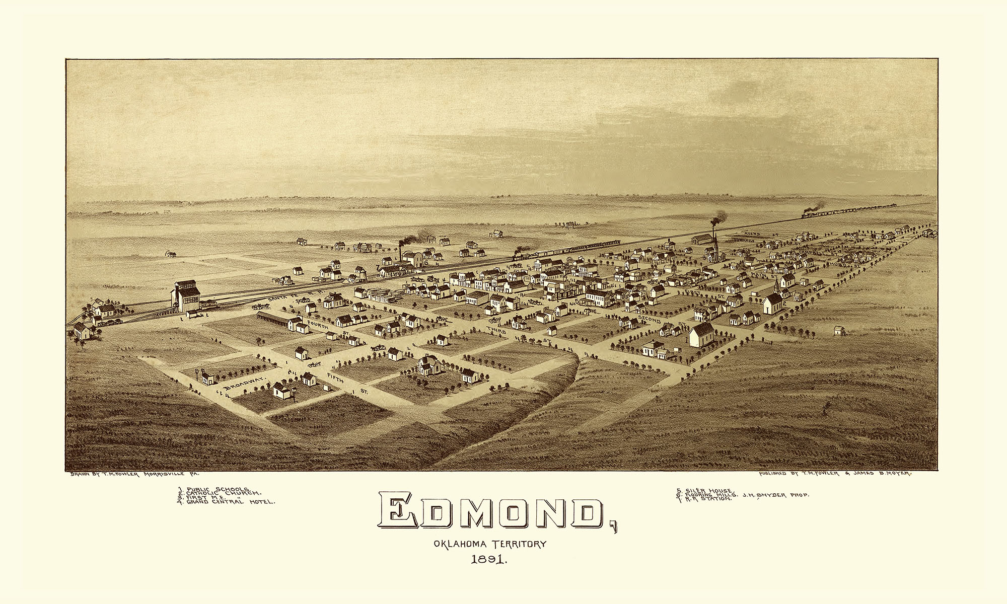 Edmond, Oklahoma in 1891 - Bird's Eye View Map, Aerial, Panorama, Vintage, Antique, Reproduction, Giclée, Fine Art, Wall Art, History