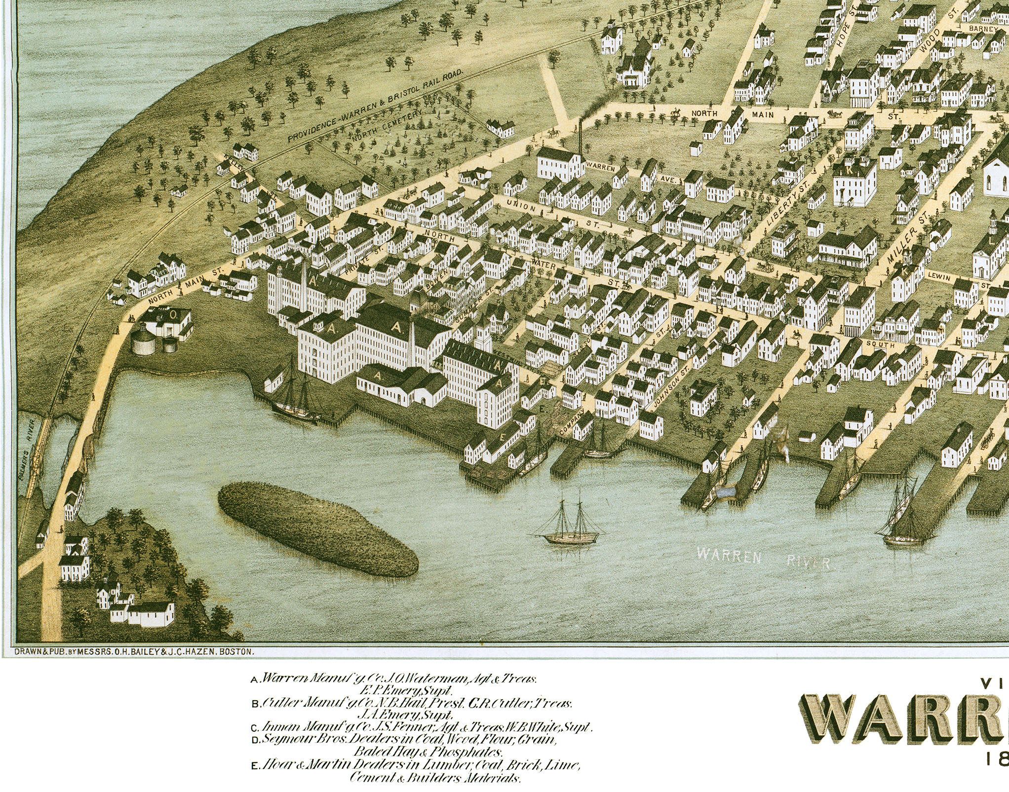 Warren, Rhode Island in 1877 - Bird's Eye View, Map, Aerial, Panorama, Vintage, Antique, Fine Art, Wall art