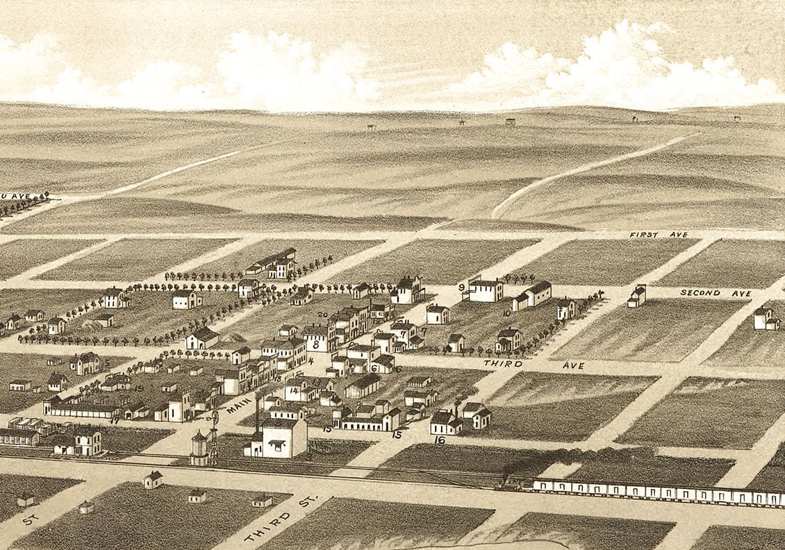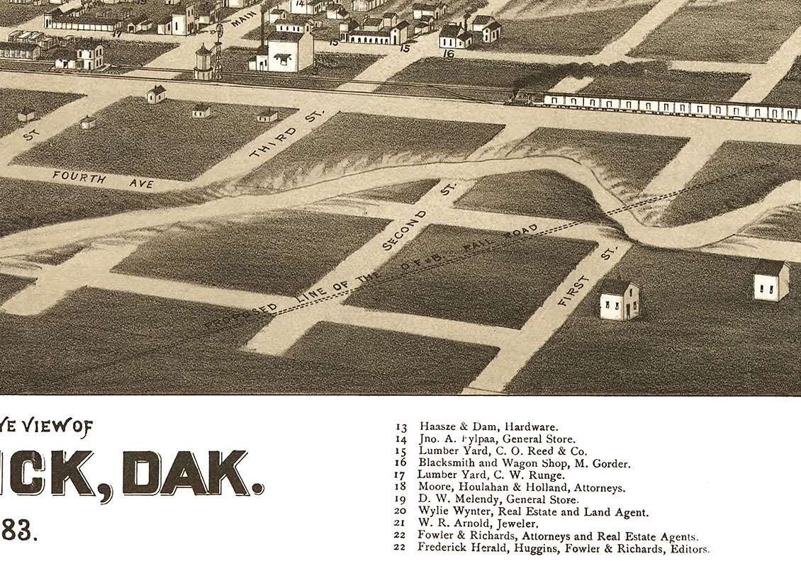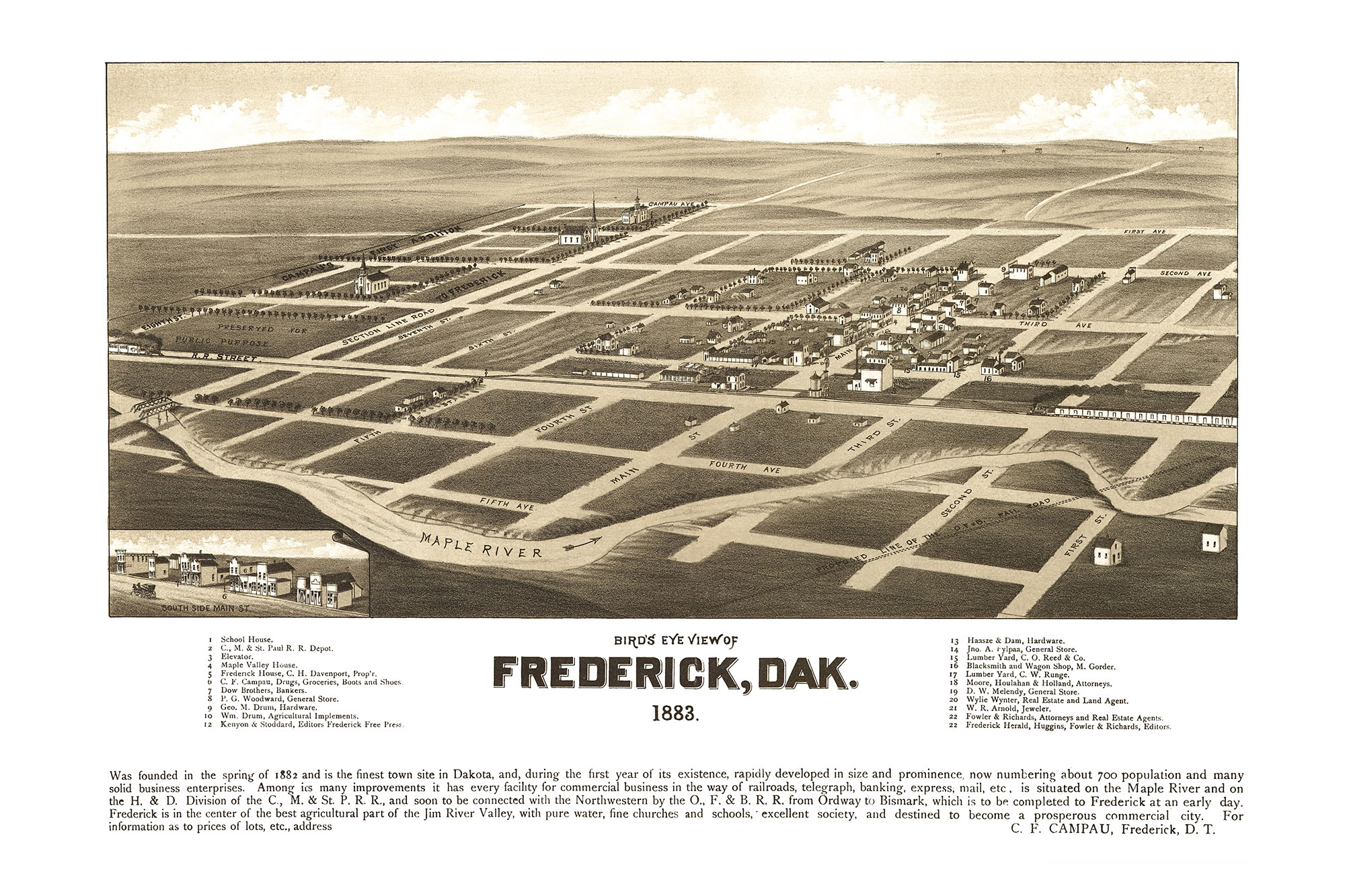 Frederick, South Dakota in 1883 - Bird's Eye View, Aerial Panorama, Vintage, Antique Map, Reproduction, Giclée, Fine Art, Wall Art, History