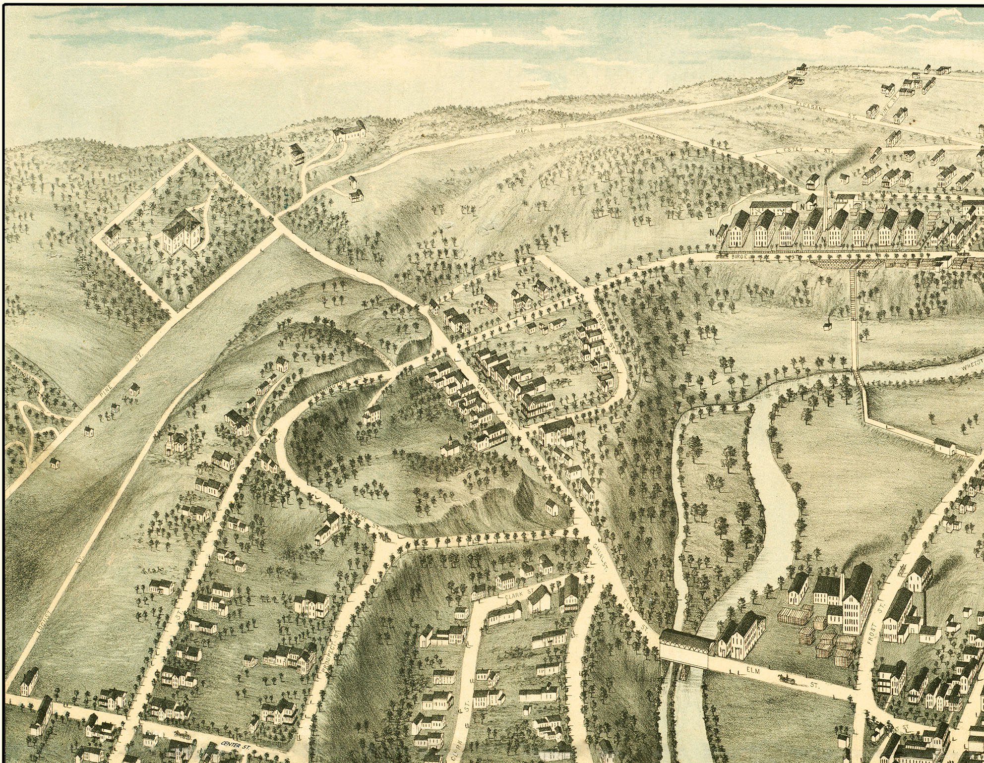 Full color fine art map of Brattleboro, Vermont in 1876.