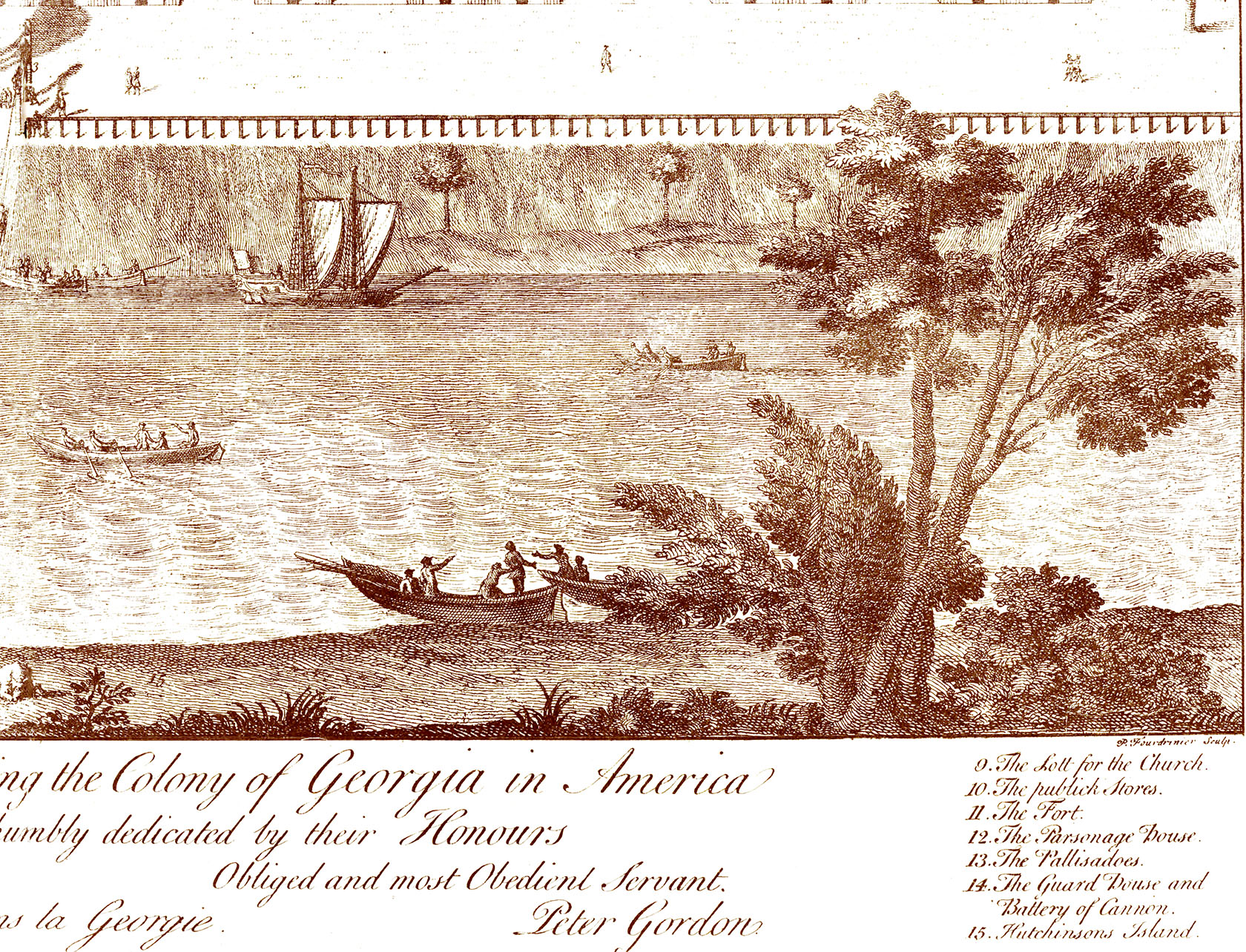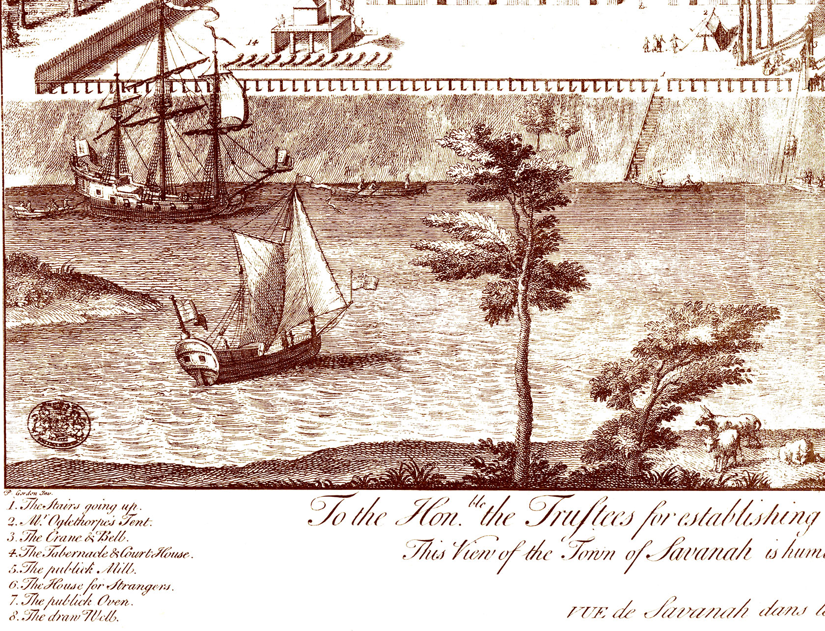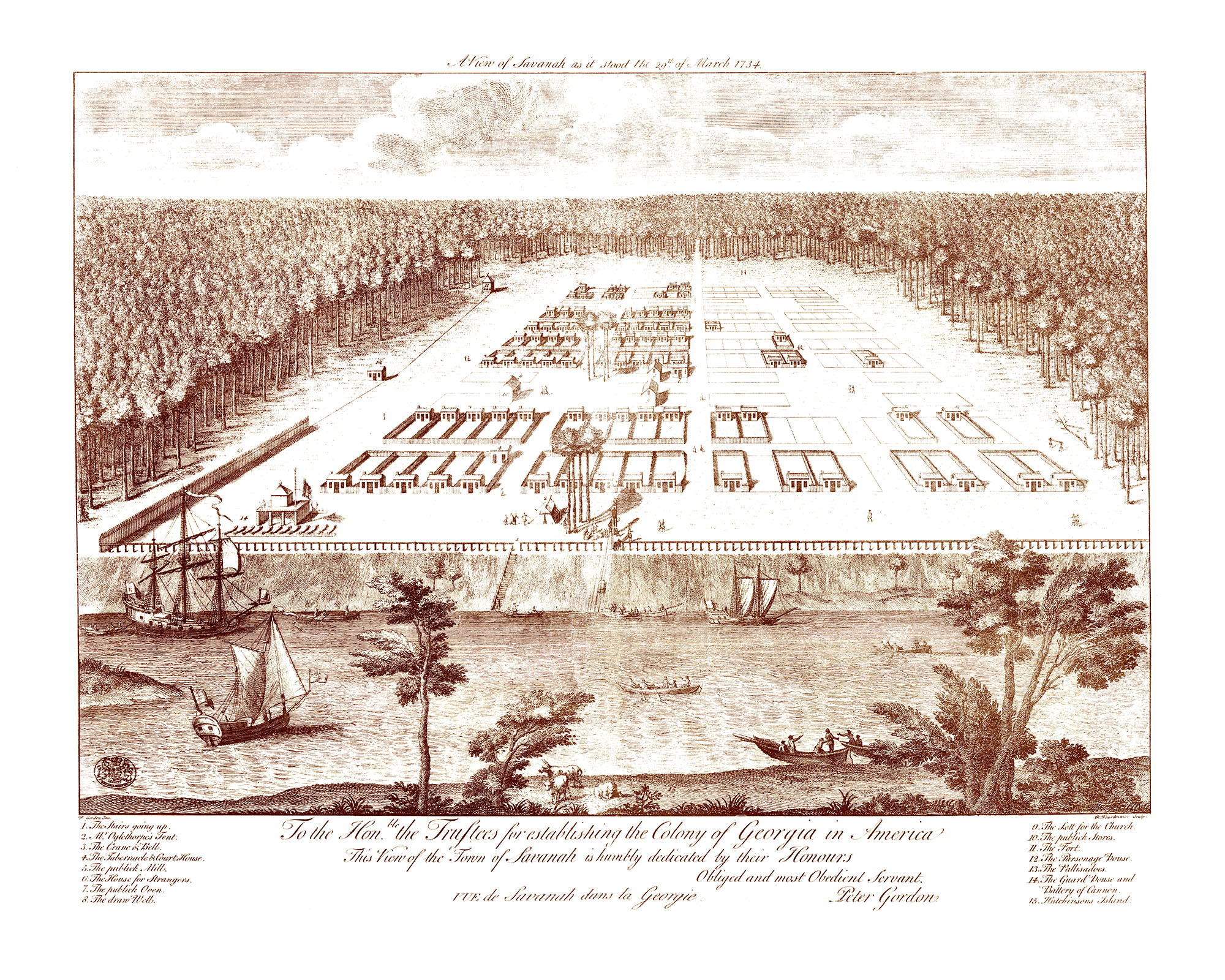Savannah, Georgia in 1734 - Bird's Eye View, Aerial, Panorama, Vintage, Antique, Reproduction, Giclée, Fine Art, Wall Art, History