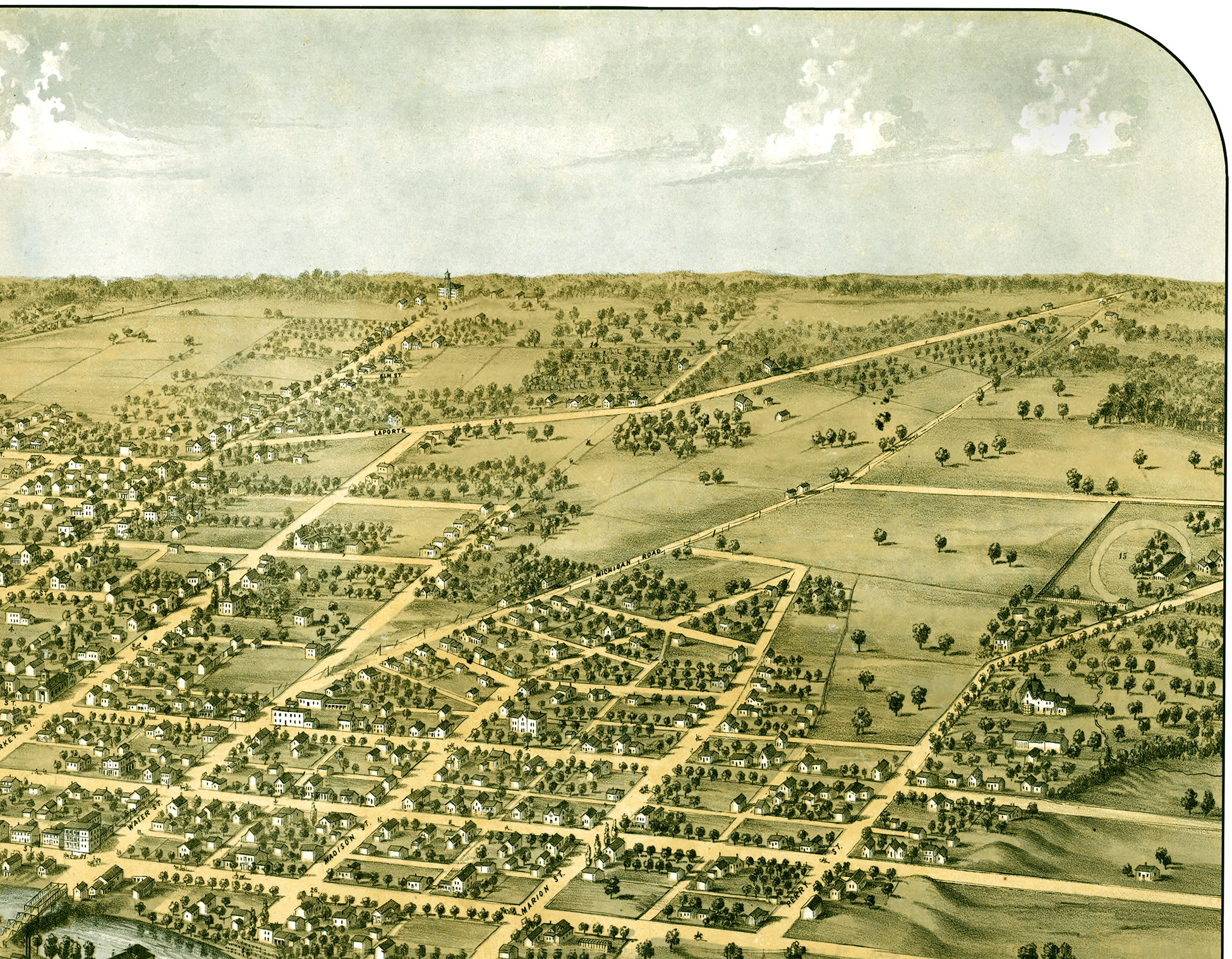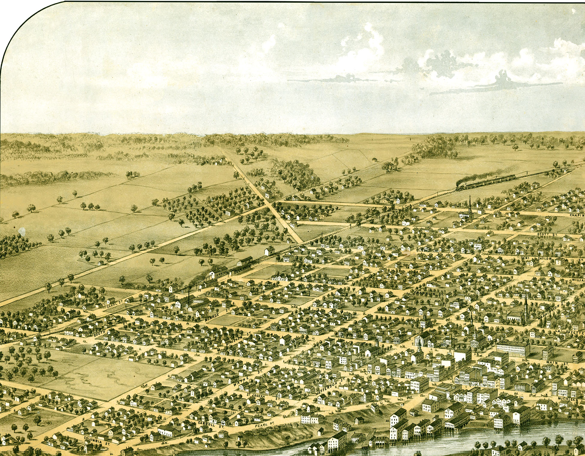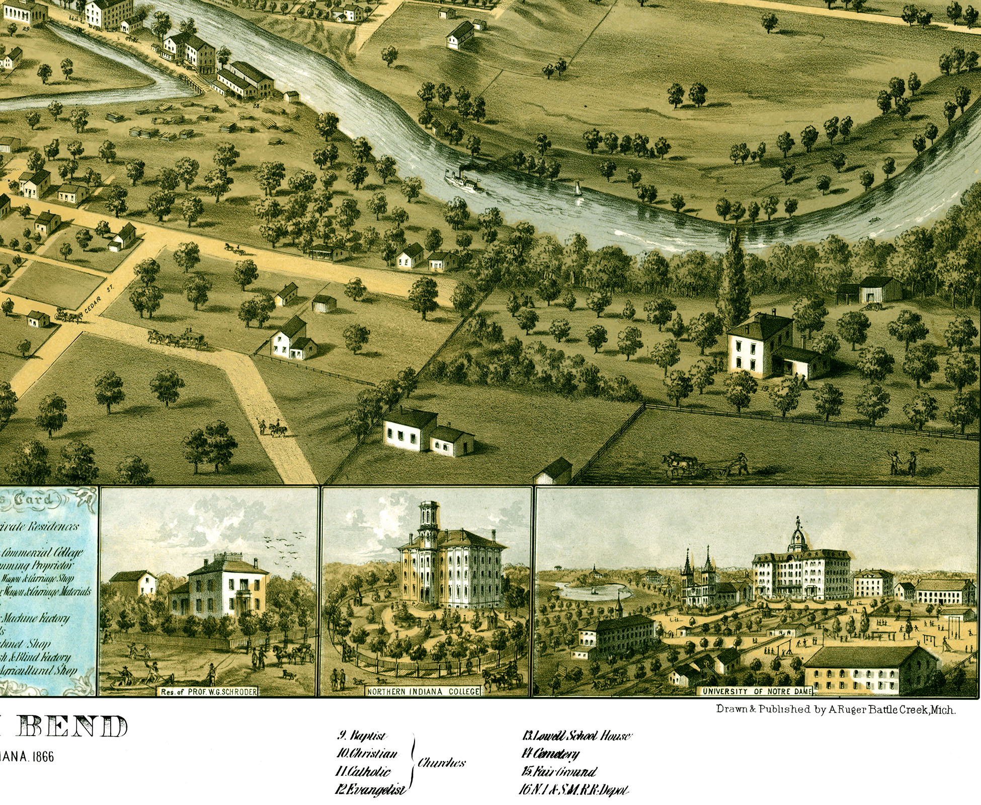 South Bend, Indiana in 1866 - Bird's Eye View Map, Aerial, Panorama, Vintage, Antique, Reproduction, Giclée, Fine Art, Wall Art, History